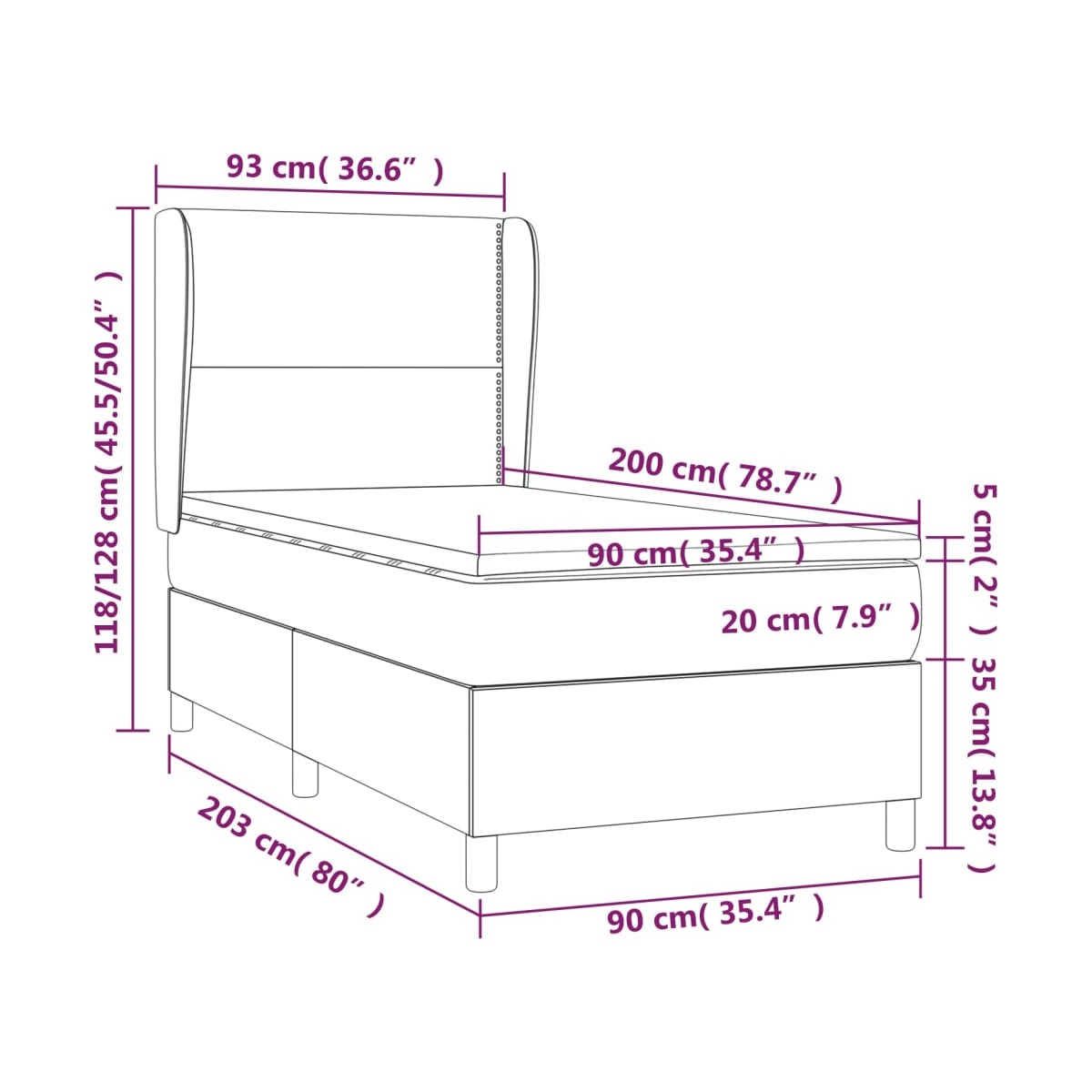 - Dimensiones: 203 x 93 x 118/128 cm (largo x ancho x alto)