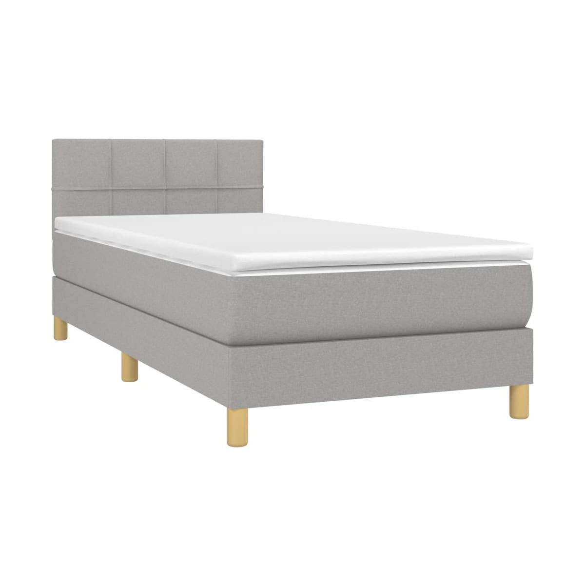 Utiliza esta cama box spring con colchón y LED para disfrutar de un sueño reparador. Es el centro de atención de tu dormitorio. Material de primera calidad: La tela posee un aspecto sencillo y limpio, y es transpirable y duradera.Cabecero práctico: El cabecero de la cama es ajustable en altura según tus preferencias. El cabecero de la cama te proporciona un excelente apoyo para la espalda mientras estás sentado en la cama para leer o ver la televisión.Tira de LED de colores: Alegra la oscuridad con luces LED de colores.Colchón de muelles ensacados: El muelle ensacado individual incorporado es conocido por su altísima calidad, al tiempo que garantiza un alto nivel de durabilidad y adaptabilidad. Puede absorber eficazmente el ruido y los golpes causados por los lanzamientos y los giros.Protector de colchón respetuoso con la piel: El protector de colchón tiene una funda de tejido resistente y respetuoso con la piel, que lo hace suave y confortable. Nota:Por razones de higiene, el colchón no puede devolverse si se ha quitado o abierto el embalaje.Cada producto viene con un manual de montaje en la caja para facilitar el montaje.Únicamente puedes cortar por la parte con el símbolo de las tijeras y únicamente la parte con el USB seguirá funcionando como antes.El producto tiene un conector USB, pero no se incluye la fuente de alimentación USB de 5 V certificada.