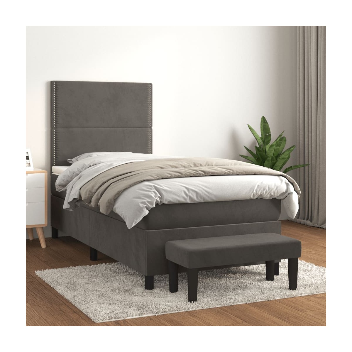 Utiliza esta cama de muelles para disfrutar de un sueño reparador. Te ofrece la máxima relajación y un sueño placentero. Terciopelo suave: El terciopelo es una tela suave y lujosa, reconocida por su denso pelo de fibras cortadas de forma uniforme que tienen una suave pelusa. La tela de terciopelo posee un característico y suave tacto, lo que hace que sea cómoda al tacto.Cabecero práctico: El cabecero de la cama es ajustable en altura según tus preferencias. El cabecero de la cama te proporciona un excelente apoyo para la espalda mientras estás sentado en la cama para leer o ver la televisión.Colchón de muelles ensacados: El muelle ensacado individual incorporado es conocido por su altísima calidad, al tiempo que garantiza un alto nivel de durabilidad y adaptabilidad. Puede absorber eficazmente el ruido y los golpes causados por los lanzamientos y los giros.Soporte de dureza media: El colchón de la cama proporciona perfectamente una mayor estabilidad y el nivel justo de firmeza sin sacrificar la comodidad. Por tanto, es ideal para quienes duermen de espaldas o boca abajo.Protector de colchón respetuoso con la piel: El protector de colchón tiene una funda de tejido resistente y respetuoso con la piel, que lo hace suave y confortable.Banco multifuncional: Este banco puede servir como asiento adicional en tu casa. Además, puede utilizarse como banco de pie de cama. Nota:Por razones de higiene, el colchón no puede devolverse si se ha quitado o abierto el embalaje.Cada producto viene con un manual de montaje en la caja para facilitar el montaje.