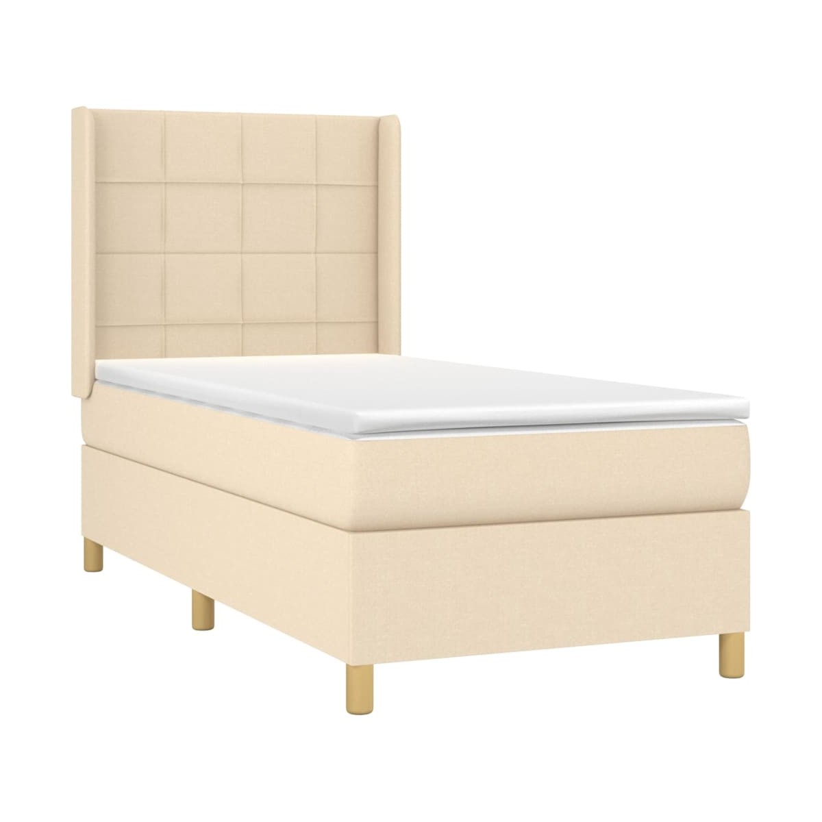 Utiliza esta cama tipo box spring con colchón y luces LED para disfrutar de un sueño reparador. Será el centro de atención del dormitorio. Material de primera calidad: La tela posee un aspecto sencillo y limpio, y es transpirable y duradera.Cabecero práctico: El cabecero de la cama es ajustable en altura según tus preferencias. El cabecero de la cama te proporciona un excelente apoyo para la espalda mientras estás sentado en la cama para leer o ver la televisión.Tira de LED de colores: Alegra la oscuridad con luces LED de colores.Colchón de muelles ensacados: El muelle ensacado individual incorporado es conocido por su altísima calidad, al tiempo que garantiza un alto nivel de durabilidad y adaptabilidad. Puede absorber eficazmente el ruido y los golpes causados por los lanzamientos y los giros.Protector de colchón respetuoso con la piel: El protector de colchón tiene una funda de tejido resistente y respetuoso con la piel, que lo hace suave y confortable. Nota:Por razones de higiene, el colchón no puede devolverse si se ha quitado o abierto el embalaje.Únicamente puedes cortar por la parte con el símbolo de las tijeras y únicamente la parte con el USB seguirá funcionando como antes.Cada producto viene con un manual de montaje en la caja para facilitar el montaje.El producto tiene un conector USB, pero no se incluye la fuente de alimentación USB de 5 V certificada.