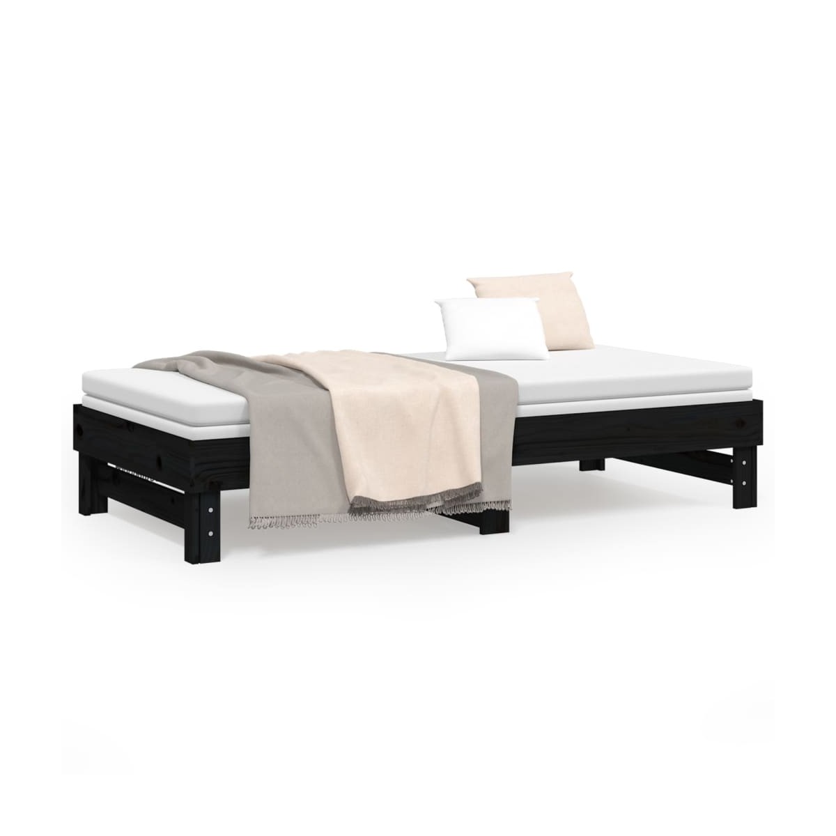 Este versátil sofá cama de madera se puede usar como cama en el dormitorio y también encaja a la perfección como sofá en el salón. Madera maciza de pino: La madera maciza de pino es un bonito material natural. La madera de pino tiene vetas rectas, y los nudos dan al material su distintivo aspecto rústico. Esta cama para invitados está hecha de madera maciza de pino, más estable y duradera.Sofá cama extraíble: Este sofá cama de madera se puede utilizar como sofá durante el día o como cama por la noche. Es una solución rápida para alojar invitados por la noche sin ocupar mucho espacio.Diseño de láminas: El somier de láminas proporciona una mejor circulación del aire para mantener el colchón fresco durante más tiempo, y mejora así la capacidad de peso de la cama auxiliar y asegura su estabilidad.Uso sencillo: Este sofá cama resulta muy práctico de usar y no necesita un canapé ni una base. ¡Tan solo coloca el colchón encima y disfruta de un sueño reparador o descansa sentado! Nota:Ten en cuenta que la entrega incluye únicamente una estructura de cama. El colchón no está incluido. Puedes echar un vistazo a nuestra tienda para buscar el correspondiente colchón.Cada producto viene con un manual de montaje en la caja para facilitar el montaje.