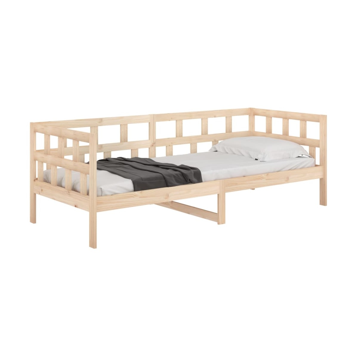 Además de servir como sofá durante el día, este sofá cama multifuncional también sirve como cama por la noche, lo que la convierte en una excelente opción para los invitados durante la noche. No importa dónde se coloque, ¡este práctico sofá cama seguramente llamará la atención! Madera de pino maciza: La madera de pino maciza es un bonito material natural. La madera de pino tiene vetas rectas, y los nudos dan al material su distintivo aspecto rústico.Encanto rústico: El sofá cama da a tu espacio matices rústicos que pueden ser realmente relajantes. El efecto calmante de este sofá cama de madera convierte cualquier dormitorio o habitación de invitados en un lugar relajante, al tiempo que añade un elemento natural a la habitación.Listones robustos: Los listones de esta cama de día de madera maciza proporcionan una buena distribución del peso, asegurando que el colchón se mantenga en su sitio con cada giro de tu cuerpo durante el sueño. Nota:Ten en cuenta que la entrega incluye únicamente una estructura de cama. El colchón no está incluido. Puedes echar un vistazo a nuestra tienda para buscar el correspondiente colchón.