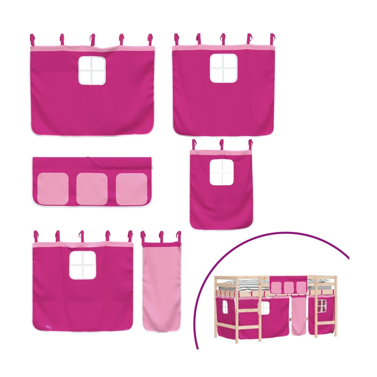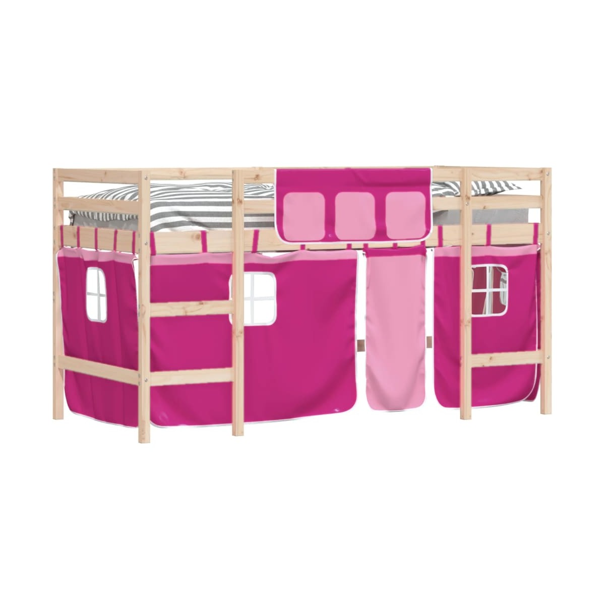 Esta cama alta para niños está hecha de madera maciza de pino y diseñada para entretener además de optimizar el espacio. Construcción estable de madera: Esta cama alta está hecha de madera de pino maciza para mayor estabilidad y durabilidad. La madera de pino tiene una veta recta, y los nudos dan a este material su característico aspecto rústico. Aprovechamiento total del espacio: Esta cama alta individual está elevada 78,5 cm sobre el suelo, lo que proporciona un amplio espacio debajo para almacenamiento u otras actividades. Esta zona se puede utilizar para apilar cajas de almacenaje, guardar juguetes grandes o incluso colocar un sofá infantil para leer. Mucha diversión: Puedes combinar las cortinas con la estructura de la cama alta para crear la base secreta para tu hijo. ¡La hora de dormir será un juego y la cama será el centro de atención del dormitorio! Barandillas de seguridad: La cama intermedia para niños cuenta con barandillas de seguridad en los 4 lados, para que tu hijo pueda dormir sin preocuparse de caerse. Cómoda escalera: Esta cama nido infantil tiene una escalera que proporciona comodidad para subir y bajar de la cama. También aporta alegría y convierte la habitación en un parque infantil interior. Información útil:El colchón no está incluido con la cama. Disponemos de una variada selección de colchones. Puedes echar un vistazo a nuestra tienda para buscar el colchón correspondiente. Advertencia:Para evitar que vuelque, este producto debe usarse con el dispositivo de fijación a la pared incluido.