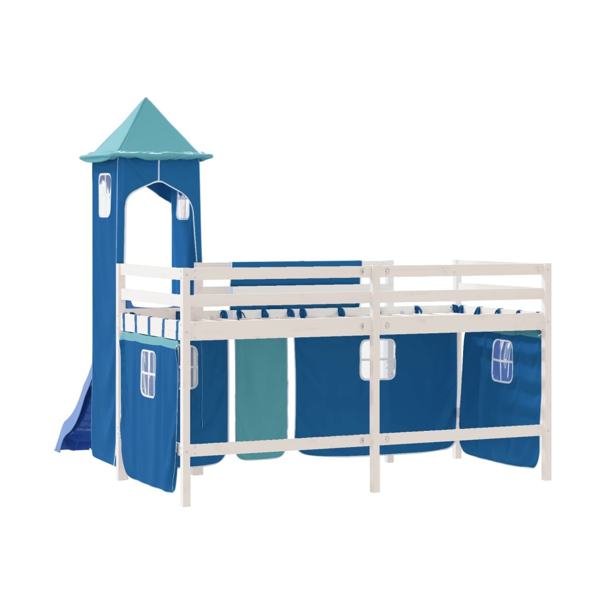 Esta cama alta para niños está hecha de madera maciza de pino y diseñada para entretener además de optimizar el espacio. Construcción estable de madera: Esta cama alta está hecha de madera de pino maciza para mayor estabilidad y durabilidad. La madera de pino tiene una veta recta, y los nudos dan a este material su característico aspecto rústico. Aprovechamiento total del espacio: Esta cama alta individual está elevada 87 cm sobre el suelo, lo que proporciona un amplio espacio debajo para almacenamiento u otras actividades. Esta zona se puede utilizar para apilar cajas de almacenaje, guardar juguetes grandes o incluso colocar un sofá infantil para leer.Mucha diversión: Puedes combinar las cortinas y la torre con la estructura de la cama alta para crear la base secreta para tu hijo. ¡La hora de dormir será un juego y la cama será el centro de atención del dormitorio!Barandillas de seguridad: La cama intermedia para niños cuenta con barandillas de seguridad en los 4 lados, para que tu hijo pueda dormir sin preocuparse de caerse. Práctica escalera y tobogán: Esta cama nido infantil tiene un divertido tobogán que convierte la habitación en un parque dentro de casa. La combinación de una escalera para trepar y un tobogán hace que la hora de dormir resulte más animada y emocionante para los niños. Información útil:El colchón no está incluido con la cama. Disponemos de una variada selección de colchones. Puedes echar un vistazo a nuestra tienda para buscar el colchón correspondiente. Advertencia:Para evitar que vuelque, este producto debe usarse con el dispositivo de fijación a la pared incluido.