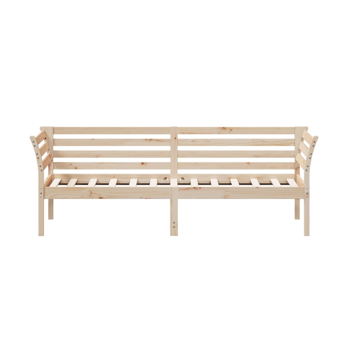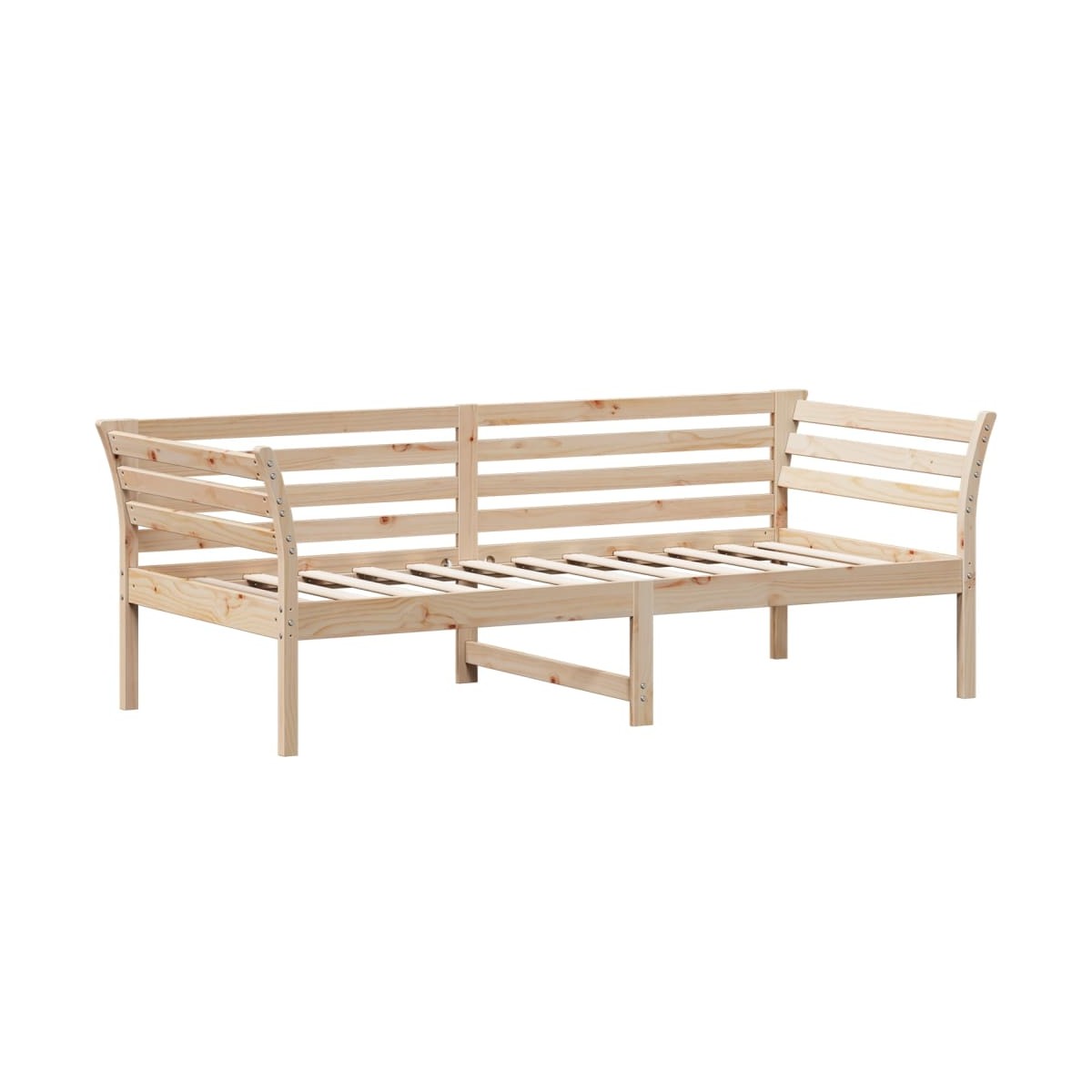 Este sofa cama de madera se puede utilizar como cama en el dormitorio y también es ideal como sofá en el salón. Se adapta perfectamente a tus diferentes necesidades, lo que te proporciona mucho espacio para dormir y descansar. Madera de pino maciza: La madera de pino maciza es un bonito material natural. La madera de pino tiene vetas rectas, y los nudos dan al material su distintivo aspecto rústico.Diseño seguro: El sofá cama está diseñado pensando en la seguridad. Cuenta con barandillas para evitar que el usuario se caiga mientras duerme.Listones robustos: Los listones de madera contrachapada proporcionan una buena distribución del peso, lo que garantiza que el colchón se mantenga en tu sitio con cada giro y vuelta del cuerpo mientras duermes.Sofá cama multiusos: El diván de madera se puede utilizar como sofá durante el día o como cama por la noche, lo que proporciona una solución rápida para recibir invitados durante la noche. Información útil:El colchón no está incluido con la cama. Ofrecemos una variada selección de colchones. Puedes echar un vistazo a nuestra tienda para buscar el correspondiente colchón.