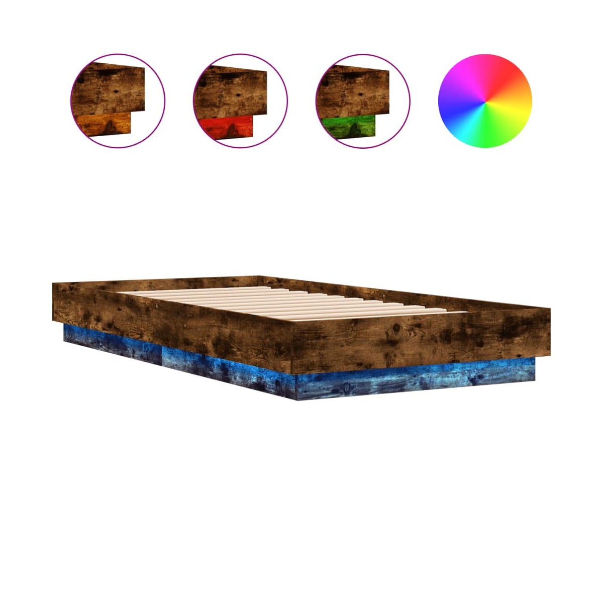 ¡Consigue tener un sueño reparador con esta estructura de cama con luces LED! Es un aporte acogedor para cualquier dormitorio. Material duradero: La madera de ingeniería tiene una calidad excepcional, con una superficie lisa y también cuenta con fuerza, estabilidad y resistencia a la humedad.Luces LED RGB: La estructura de cama está equipada con luces LED RGB. Con varios menús personalizables, puedes cambiar fácilmente el color de las luces e incluso configurarlas para que se ajusten automáticamente. Estas luces LED no sólo realzan el aspecto moderno de la base de la cama, sino que también aumentan su atractivo.Listones robustos: Los listones de madera contrachapada proporcionan una buena distribución del peso, lo que garantiza que el colchón se mantenga en tu sitio con cada giro y vuelta del cuerpo mientras duermes. Información útil:El colchón no está incluido con la cama. Disponemos de una variada selección de colchones. Puedes echar un vistazo a nuestra tienda para buscar el colchón correspondiente.El producto tiene un conector USB que necesita una fuente de alimentación USB certificada de 5 V (no incluida).