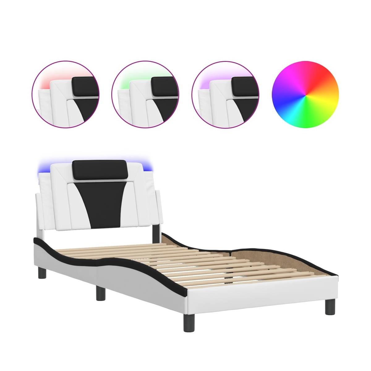 ¡Consigue tener un sueño reparador con esta estructura de cama con luces LED! Es un aporte acogedor para cualquier dormitorio. Material duradero: El cuero sintético de primera calidad es un material muy duradero. Es resistente a las manchas, por lo que es fácil de limpiar con un paño húmedo. Además, la superficie lisa da un aspecto lujoso y la belleza del cuero auténtico.Listones robustos: Los listones de madera contrachapada proporcionan una buena distribución del peso, lo que garantiza que el colchón se mantenga en tu sitio con cada giro y vuelta del cuerpo mientras duermes. Excelente soporte: El cabecero acolchado está relleno de espuma para una comodidad ultrasuave y óptima, lo que te brinda un excelente soporte para la espalda mientras estás sentado en la cama para leer o ver la televisión. Tira de LED de colores: Alegra la oscuridad con luces LED de colores. Los cierres de gancho y bucle de la parte posterior del cojín del cabecero se pueden utilizar para fijar las luces LED. Diseño lateral ondulado: El look ondulado de la estructura de la cama es elegante y sofisticado, agregando un toque moderno y elegante a tu decoración, convirtiéndolo en el foco de atención de tu dormitorio. Información útil:El colchón no está incluido con la cama. Disponemos de una variada selección de colchones. Puedes echar un vistazo a nuestra tienda para buscar el colchón correspondiente.El producto tiene un conector USB que necesita una fuente de alimentación USB certificada de 5 V (no incluida).