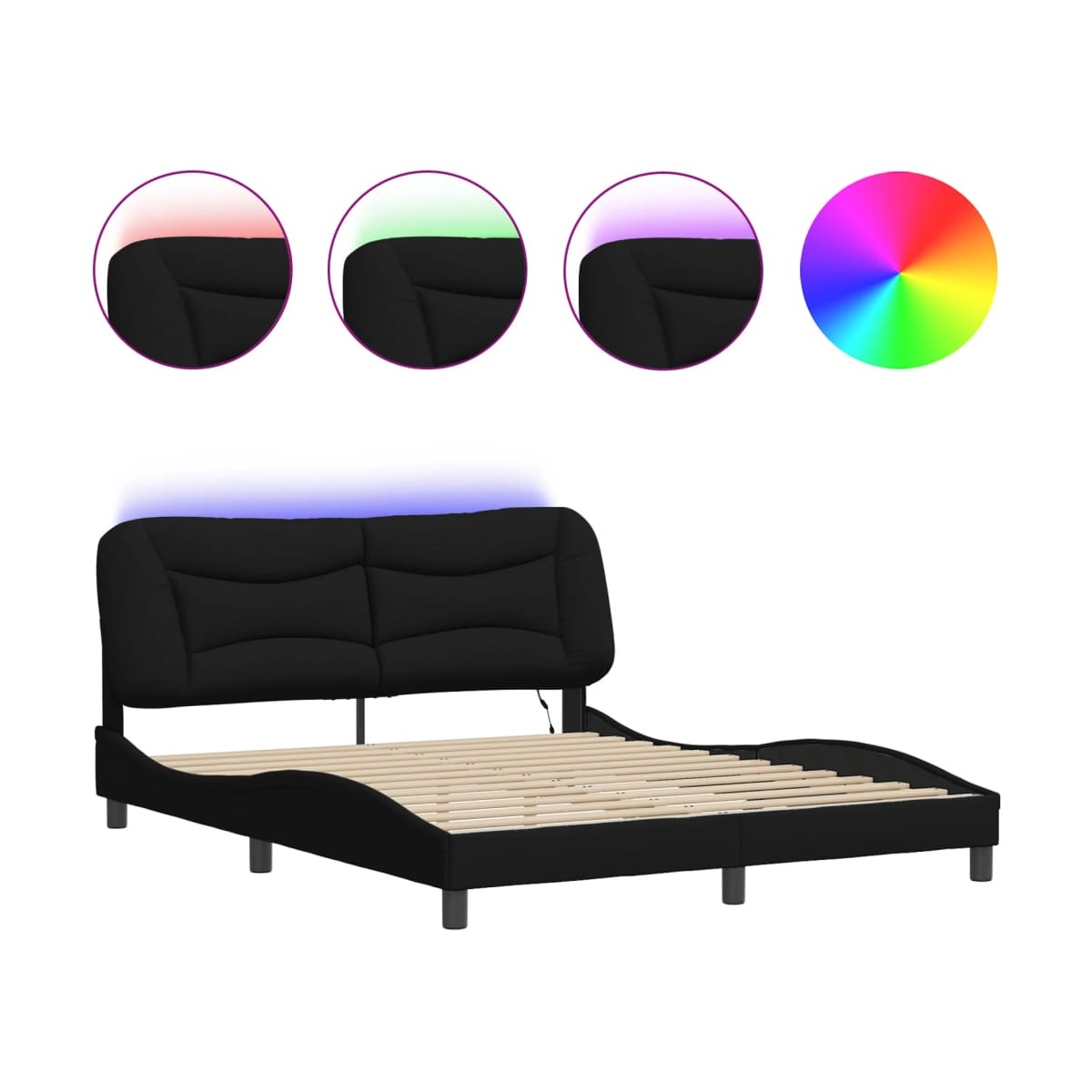 ¡Consigue tener un sueño reparador con esta estructura de cama con luces LED! Es un aporte acogedor para cualquier dormitorio. Material de primera calidad: La tela posee un aspecto sencillo y limpio, y es transpirable y duradera.Listones robustos: Los listones de madera contrachapada proporcionan una buena distribución del peso, lo que garantiza que el colchón se mantenga en tu sitio con cada giro y vuelta del cuerpo mientras duermes.Excelente apoyo: El cabecero de la cama te proporciona un excelente apoyo para la espalda mientras estás sentado en la cama para leer o ver la televisión.Tira de LED de colores: Alegra la oscuridad con luces LED de colores. Los cierres de gancho y bucle de la parte posterior del cojín del cabecero se pueden utilizar para fijar las luces LED.Diseño lateral ondulado: El look ondulado de la estructura de la cama es elegante y sofisticado, agregando un toque moderno y elegante a tu decoración, convirtiéndolo en el foco de atención de tu dormitorio. Información útil:El colchón no está incluido con la cama. Disponemos de una variada selección de colchones. Puedes echar un vistazo a nuestra tienda para buscar el colchón correspondiente.El producto tiene un conector USB que necesita una fuente de alimentación USB certificada de 5 V (no incluida).