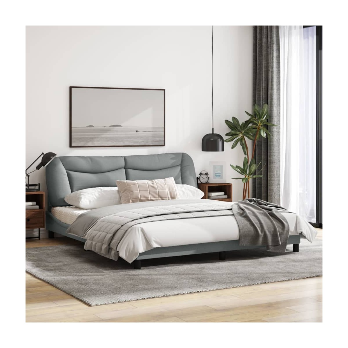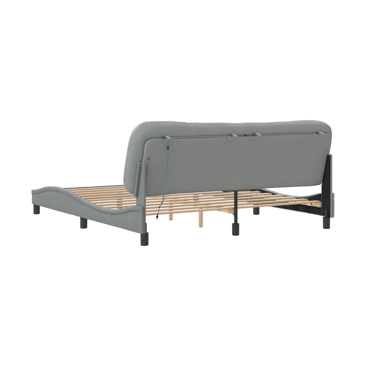 ¡Consigue tener un sueño reparador con esta estructura de cama con luces LED! Es un aporte acogedor para cualquier dormitorio. Material de primera calidad: La tela posee un aspecto sencillo y limpio, y es transpirable y duradera.Listones robustos: Los listones de madera contrachapada proporcionan una buena distribución del peso, lo que garantiza que el colchón se mantenga en tu sitio con cada giro y vuelta del cuerpo mientras duermes.Excelente apoyo: El cabecero de la cama te proporciona un excelente apoyo para la espalda mientras estás sentado en la cama para leer o ver la televisión.Tira de LED de colores: Alegra la oscuridad con luces LED de colores. Los cierres de gancho y bucle de la parte posterior del cojín del cabecero se pueden utilizar para fijar las luces LED.Diseño lateral ondulado: El look ondulado de la estructura de la cama es elegante y sofisticado, agregando un toque moderno y elegante a tu decoración, convirtiéndolo en el foco de atención de tu dormitorio. Información útil:El colchón no está incluido con la cama. Disponemos de una variada selección de colchones. Puedes echar un vistazo a nuestra tienda para buscar el colchón correspondiente.El producto tiene un conector USB que necesita una fuente de alimentación USB certificada de 5 V (no incluida).