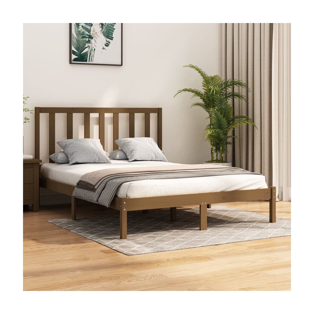 Con un diseño sencillo pero atemporal, esta estructura de cama está pensada para ser un aporte verdaderamente práctico y decorativo para tu dormitorio. Material de primera calidad: La madera maciza de pino es un bonito material natural. La madera de pino tiene vetas rectas, y los nudos dan al material su distintivo aspecto rústico.Estructura de cama resistente: La estructura de madera garantiza su solidez y estabilidad. Las láminas de pino macizo proporcionan soporte adicional para tu cama. Extiende la vida útil del colchón al absorber la mayor parte del estrés y el peso en la cama.Soporte cómodo: Esta cabecera de cama te brinda un excelente soporte para la espalda cuando te sientas en la cama para leer o ver películas. Nota:El colchón no está incluido. Puedes echar un vistazo a nuestra tienda para buscar el correspondiente colchón.Esta estructura de cama es adecuada para un colchón de 140 x 200 cm