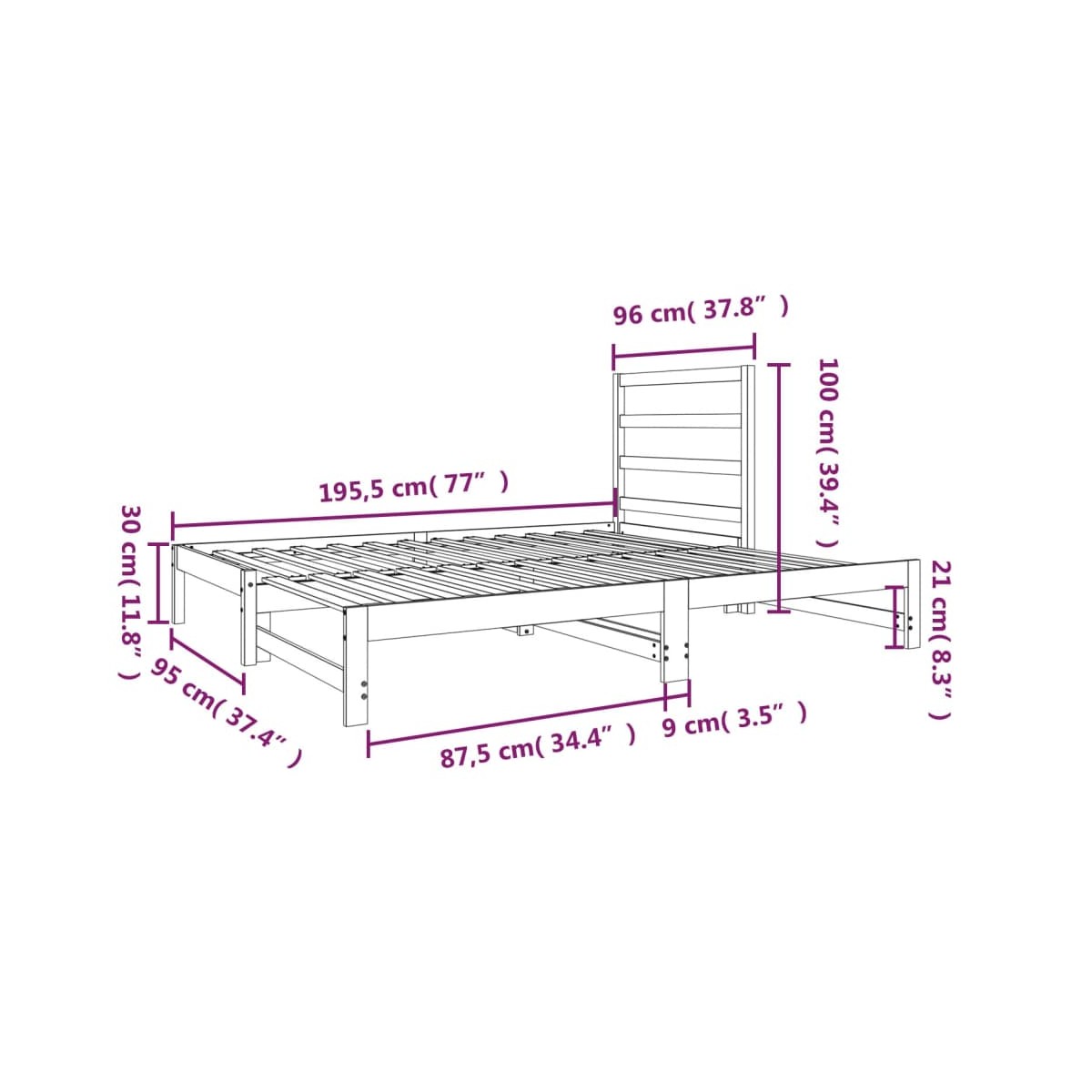 - Dimensiones del sofá cama (sin abrir): 195,5 x 95 x 30 cm (largo x ancho x alto)