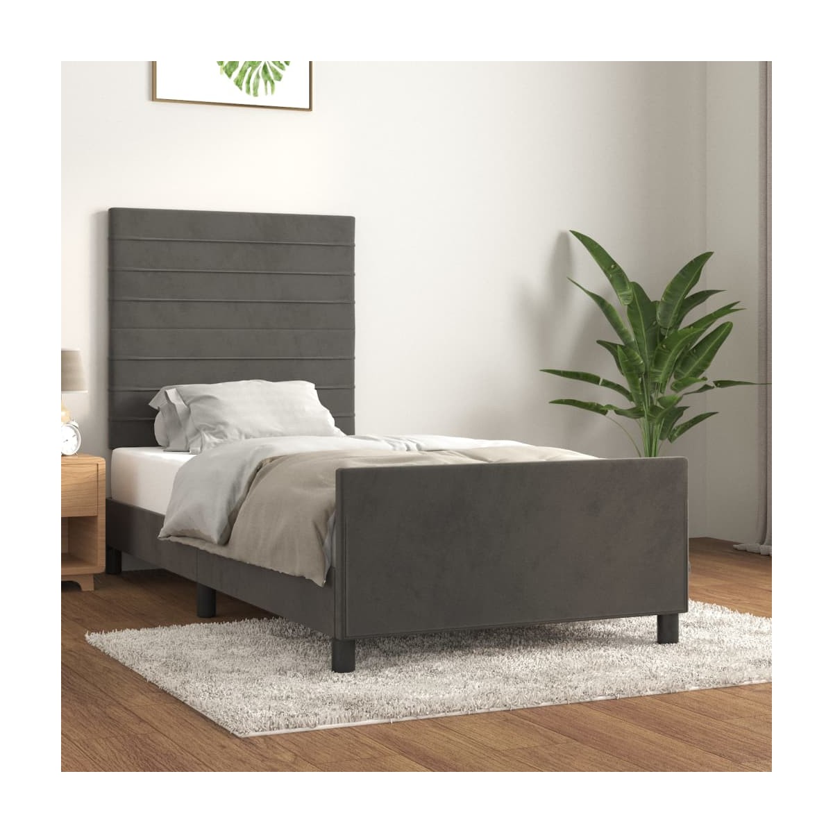 ¡Consigue un sueño más reparador con esta estructura de cama con cabecero! Es un aporte acogedor para cualquier dormitorio. Terciopelo suave: El terciopelo es una tela suave y lujosa, reconocida por su denso pelo de fibras cortadas de forma uniforme que tienen una suave pelusa. La tela de terciopelo posee un característico y suave tacto, lo que hace que sea cómoda al tacto.Altura regulable: El cabecero de la cama es ajustable en altura según tus preferencias.Patas de apoyo: La cama se apoya en patas robustas, que garantizan su estabilidad, seguridad y firmeza.Listones robustos: Los listones de madera contrachapada proporcionan una buena distribución del peso, lo que garantiza que el colchón se mantenga en tu sitio con cada giro y vuelta del cuerpo mientras duermes.Excelente apoyo: El cabecero de la cama te proporciona un excelente apoyo para la espalda mientras estás sentado en la cama para leer o ver la televisión. Nota:La entrega incluye solo una estructura de cama. El colchón no está incluido. Puedes echar un vistazo en nuestra tienda para buscar colchones a juego.Cada producto viene con un manual de montaje en la caja para facilitar el montaje.