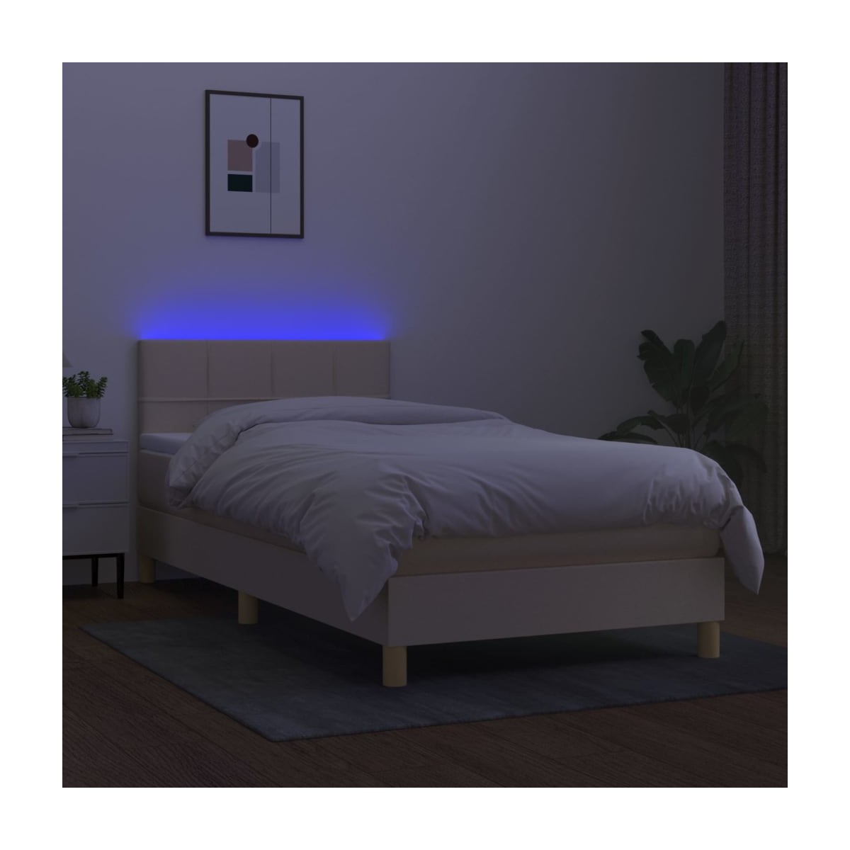 Utiliza esta cama box spring con colchón y LED para disfrutar de un sueño reparador. Es el centro de atención de tu dormitorio. Material de primera calidad: La tela posee un aspecto sencillo y limpio, y es transpirable y duradera.Cabecero práctico: El cabecero de la cama es ajustable en altura según tus preferencias. El cabecero de la cama te proporciona un excelente apoyo para la espalda mientras estás sentado en la cama para leer o ver la televisión.Tira de LED de colores: Alegra la oscuridad con luces LED de colores.Colchón de muelles ensacados: El muelle ensacado individual incorporado es conocido por su altísima calidad, al tiempo que garantiza un alto nivel de durabilidad y adaptabilidad. Puede absorber eficazmente el ruido y los golpes causados por los lanzamientos y los giros.Protector de colchón respetuoso con la piel: El protector de colchón tiene una funda de tejido resistente y respetuoso con la piel, que lo hace suave y confortable. Nota:Por razones de higiene, el colchón no puede devolverse si se ha quitado o abierto el embalaje.Cada producto viene con un manual de montaje en la caja para facilitar el montaje.Únicamente puedes cortar por la parte con el símbolo de las tijeras y únicamente la parte con el USB seguirá funcionando como antes.El producto tiene un conector USB, pero no se incluye la fuente de alimentación USB de 5 V certificada.