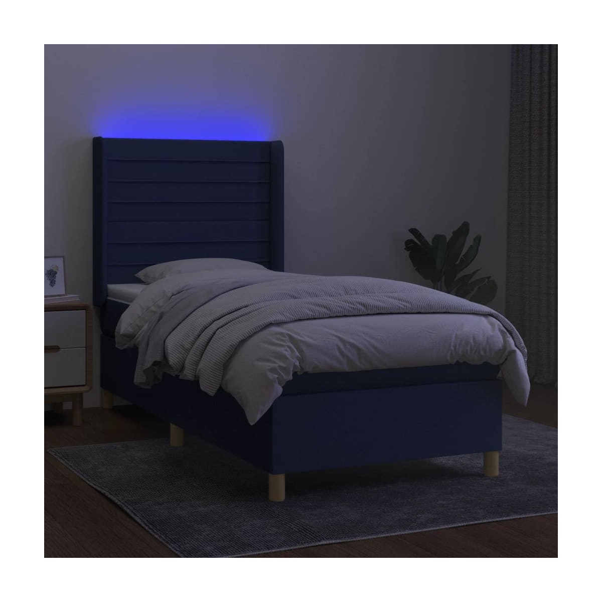 Utiliza esta cama tipo box spring con colchón y luces LED para disfrutar de un sueño reparador. Será el centro de atención del dormitorio. Material de primera calidad: La tela posee un aspecto sencillo y limpio, y es transpirable y duradera.Cabecero práctico: El cabecero de la cama es ajustable en altura según tus preferencias. El cabecero de la cama te proporciona un excelente apoyo para la espalda mientras estás sentado en la cama para leer o ver la televisión.Tira de LED de colores: Alegra la oscuridad con luces LED de colores.Colchón de muelles ensacados: El muelle ensacado individual incorporado es conocido por su altísima calidad, al tiempo que garantiza un alto nivel de durabilidad y adaptabilidad. Puede absorber eficazmente el ruido y los golpes causados por los lanzamientos y los giros.Protector de colchón respetuoso con la piel: El protector de colchón tiene una funda de tejido resistente y respetuoso con la piel, que lo hace suave y confortable. Nota:Por razones de higiene, el colchón no puede devolverse si se ha quitado o abierto el embalaje.Únicamente puedes cortar por la parte con el símbolo de las tijeras y únicamente la parte con el USB seguirá funcionando como antes.Cada producto viene con un manual de montaje en la caja para facilitar el montaje.El producto tiene un conector USB, pero no se incluye la fuente de alimentación USB de 5 V certificada.