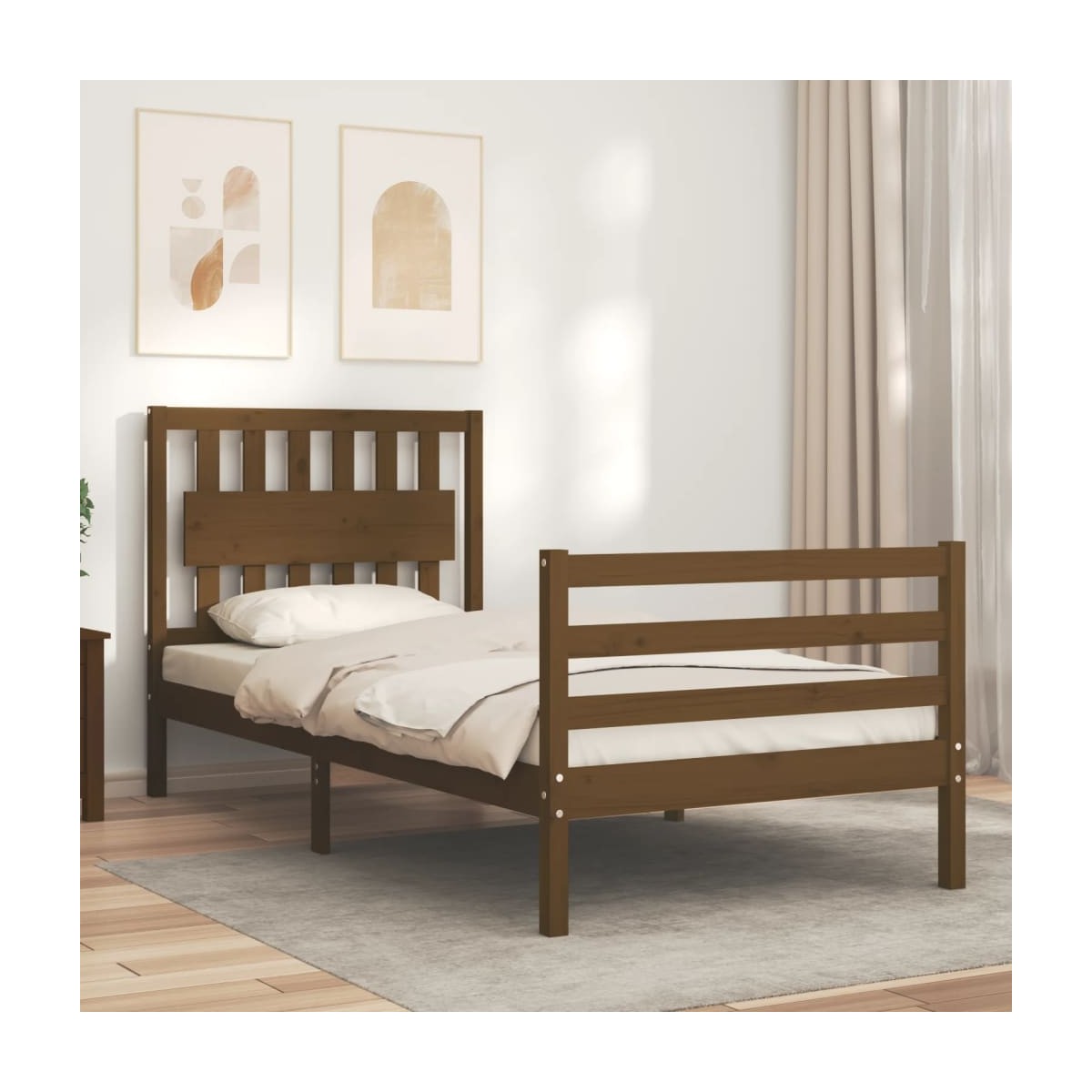¡Disfruta de una buena noche de sueño en esta estructura de cama de madera! Es un aporte práctico y decorativo para la casa. Material duradero: La madera maciza de pino es un hermoso material natural. La madera de pino tiene vetas rectas, y los nudos dan al material su distintivo aspecto rústico. Hecha de madera maciza de pino, esta cama es resistente y duradera.Listones de madera contrachapada: Los listones de madera contrachapada ofrecen una buena distribución del peso, lo que garantiza el tan necesario soporte y la transpirabilidad del colchón.Cabecero y estribo de cama útiles: El cabecero y el estribo de la cama de madera mantienen el colchón en su lugar. Además, la cabecera te brinda un excelente soporte para la espalda mientras estás sentado leyendo o mirando la televisión. Información útil: El colchón no está incluido con la cama. Disponemos de una variada selección de colchones. Puedes echar un vistazo a nuestra tienda para buscar el colchón correspondiente.