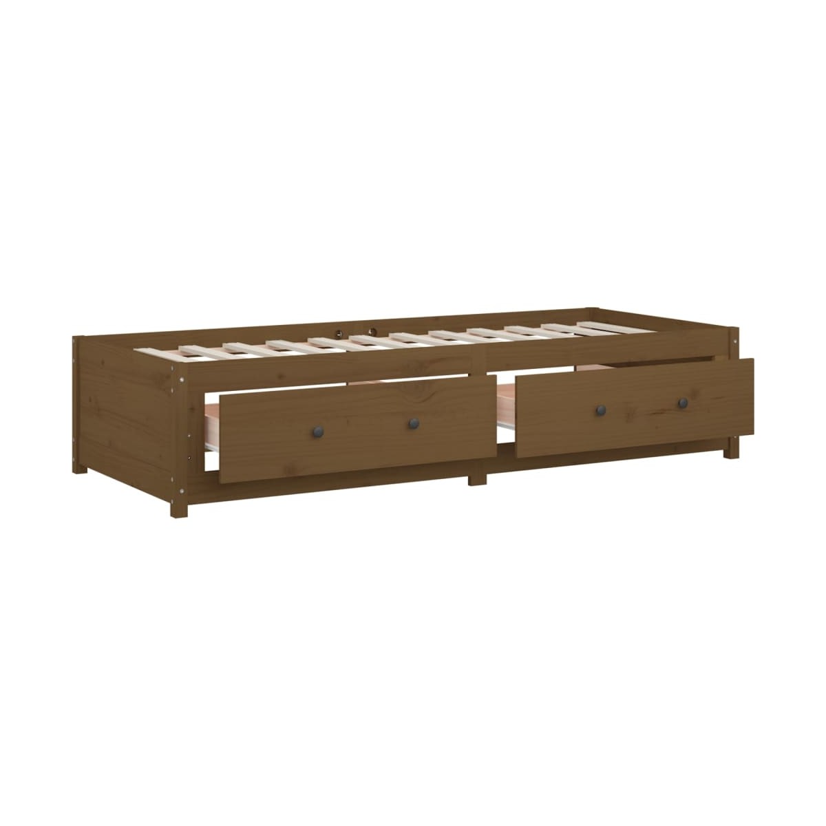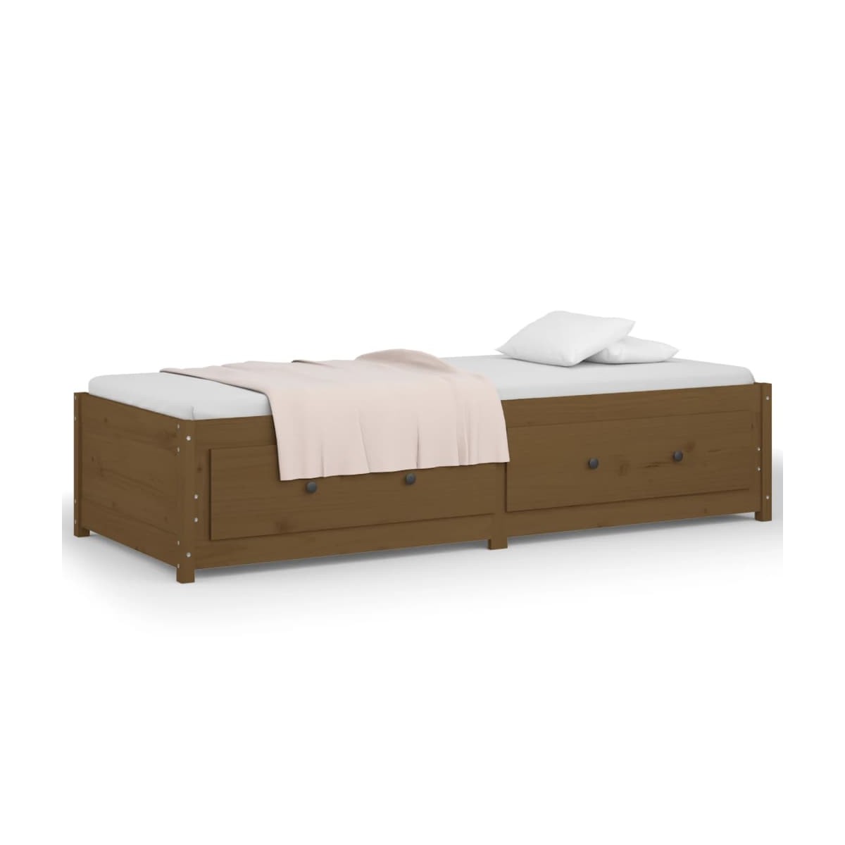 Esta versátil sofá cama puede utilizarse no solo como cama en el dormitorio, sino que también encaja perfectamente como sofá en el salón. Se adaptará perfectamente a tus diferentes necesidades, proporcionándote mucho espacio para dormir o descansar. Madera de pino maciza: La madera de pino maciza es un bonito material natural. La madera de pino tiene vetas rectas, y los nudos dan al material su distintivo aspecto rústico.Sofá cama multiusos: Este sofá cama de madera se puede utilizar como sofá durante el día o como cama por la noche. Es una solución rápida para alojar invitados por la noche sin ocupar mucho espacio.Estructura de cama resistente: La estructura de madera del sofá cama garantiza su solidez y estabilidad. Los listones de madera contrachapada proporcionan una buena distribución del peso, lo que garantiza que el colchón se mantenga en su sitio con cada giro y vuelta del cuerpo mientras duermes.Función de almacenaje: Los cajones de cama incluidos proporcionan amplio espacio de almacenamiento para guardar cosas básicas, y mantienen la habitación limpia y ordenada. Nota:La entrega incluye solo una estructura de cama. El colchón no está incluido. Puedes echar un vistazo en nuestra tienda para buscar colchones a juego.Esta estructura de cama es adecuada para un colchón de 75 x 190 cm (2FT6 pequeño individual).