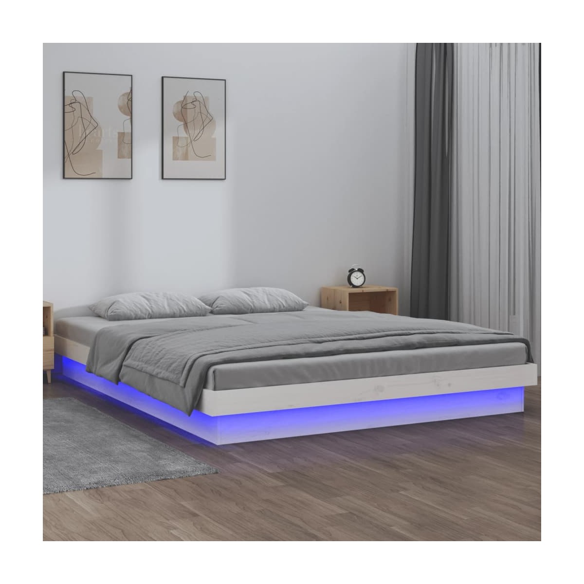Esta clásica estructura de madera con coloridas luces LED está destinada a ser el centro de atención del dormitorio. Madera de pino maciza: La madera de pino maciza es un bonito material natural. La madera de pino tiene vetas rectas, y los nudos dan al material su distintivo aspecto rústico.Estructura robusta y estable: La estructura de madera garantiza su solidez y estabilidad.Coloridas luces LED: ¡Esta cama de madera aporta alegría en los rincones oscuros gracias a las coloridas luces LED!Práctico mando a distancia: Regula el ambiente en el dormitorio con las luces LED que se controlan con mando a distancia. El control remoto te permite cambiar entre los diferentes colores de iluminación. Nota: El colchón no está incluido. Puedes echar un vistazo a nuestra tienda para buscar el correspondiente colchón.Esta estructura de cama es adecuada para un colchón de 140 x 190 cmEl producto tiene un conector USB, pero no se incluye la fuente de alimentación USB de 5 V certificada.