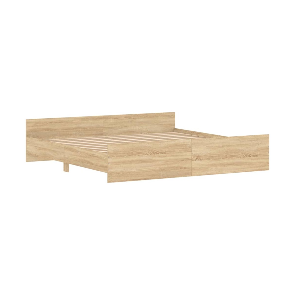 Consigue un sueño más reparador con esta estructura de cama. Es un aporte acogedor para cualquier dormitorio. Material duradero: La madera de ingeniería tiene una calidad excepcional, con una superficie lisa y también cuenta con fuerza, estabilidad y resistencia a la humedad.Cabecero y estribo de cama funcionales: El cabecero y el estribo de cama mantienen el colchón en su lugar. Además, la cabecera te brinda un excelente soporte para la espalda mientras estás sentado leyendo o mirando la televisión.Listones robustos: Los listones de madera contrachapada proporcionan una buena distribución del peso, lo que garantiza que el colchón se mantenga en tu sitio con cada giro y vuelta del cuerpo mientras duermes. Información útil:El colchón no está incluido con la cama. Disponemos de una variada selección de colchones. Puedes echar un vistazo a nuestra tienda para buscar el colchón correspondiente.