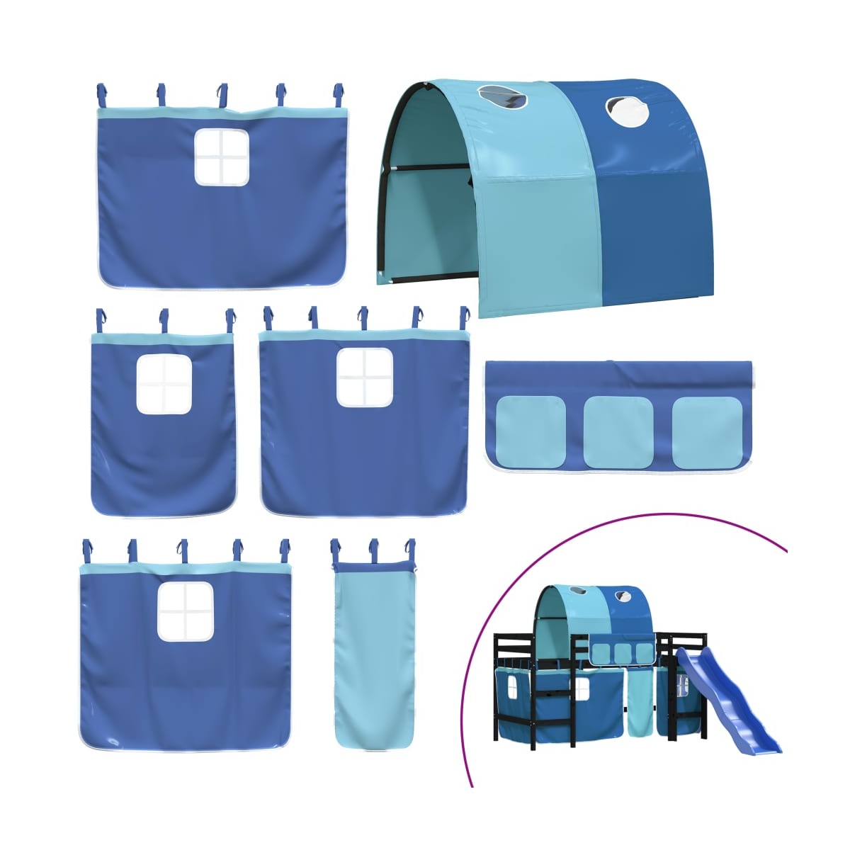 Esta cama alta para niños está hecha de madera maciza de pino y diseñada para entretener además de optimizar el espacio. Construcción estable de madera: Esta cama alta está hecha de madera de pino maciza para mayor estabilidad y durabilidad. La madera de pino tiene una veta recta, y los nudos dan a este material su característico aspecto rústico. Aprovechamiento total del espacio: Esta cama alta individual está elevada 87 cm sobre el suelo, lo que proporciona un amplio espacio debajo para almacenamiento u otras actividades. Esta zona se puede utilizar para apilar cajas de almacenaje, guardar juguetes grandes o incluso colocar un sofá infantil para leer.Mucha diversión: Puedes combinar las cortinas y el túnel con la estructura de la cama alta para crear la base secreta para tu hijo. ¡La hora de dormir será un juego y la cama será el centro de atención del dormitorio!Barandillas de seguridad: La cama intermedia para niños cuenta con barandillas de seguridad en los 4 lados, para que tu hijo pueda dormir sin preocuparse de caerse. Práctica escalera y tobogán: Esta cama nido infantil tiene un divertido tobogán que convierte la habitación en un parque dentro de casa. La combinación de una escalera para trepar y un tobogán hace que la hora de dormir resulte más animada y emocionante para los niños. Información útil:El colchón no está incluido con la cama. Disponemos de una variada selección de colchones. Puedes echar un vistazo a nuestra tienda para buscar el colchón correspondiente. Advertencia:Para evitar que vuelque, este producto debe usarse con el dispositivo de fijación a la pared incluido.