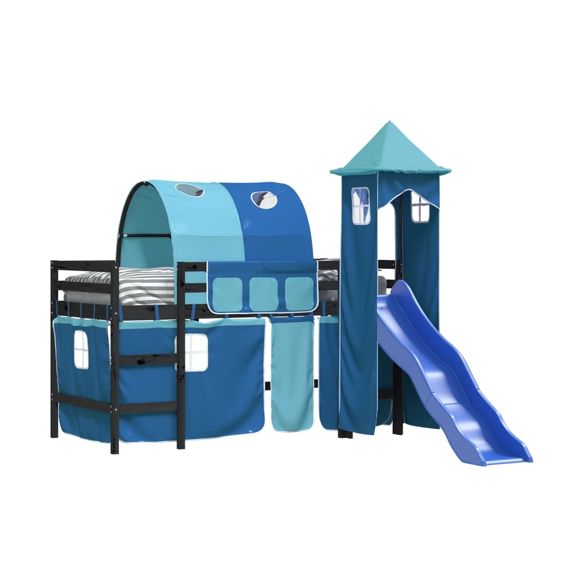 Esta cama alta para niños está hecha de madera maciza de pino y diseñada para entretener además de optimizar el espacio. Construcción estable de madera: Esta cama alta está hecha de madera de pino maciza para mayor estabilidad y durabilidad. La madera de pino tiene una veta recta, y los nudos dan a este material su característico aspecto rústico. Aprovechamiento total del espacio: Esta cama alta individual está elevada 87 cm sobre el suelo, lo que proporciona un amplio espacio debajo para almacenamiento u otras actividades. Esta zona se puede utilizar para apilar cajas de almacenaje, guardar juguetes grandes o incluso colocar un sofá infantil para leer.Mucha diversión: Puedes combinar las cortinas, el túnel y la torre con la estructura de la cama alta para crear la base secreta para tu hijo. ¡La hora de dormir será un juego y la cama será el centro de atención del dormitorio!Barandillas de seguridad: La cama intermedia para niños cuenta con barandillas de seguridad en los 4 lados, para que tu hijo pueda dormir sin preocuparse de caerse. Práctica escalera y tobogán: Esta cama nido infantil tiene un divertido tobogán que convierte la habitación en un parque dentro de casa. La combinación de una escalera para trepar y un tobogán hace que la hora de dormir resulte más animada y emocionante para los niños. Información útil:El colchón no está incluido con la cama. Disponemos de una variada selección de colchones. Puedes echar un vistazo a nuestra tienda para buscar el colchón correspondiente. Advertencia:Para evitar que vuelque, este producto debe usarse con el dispositivo de fijación a la pared incluido.