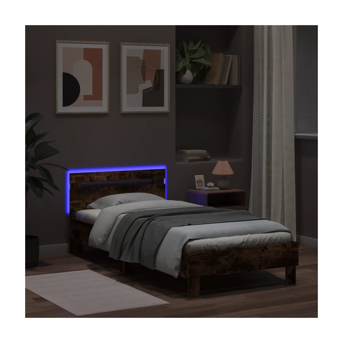 ¡Consigue tener un sueño más reparador con esta estructura de cama con cabecero y luces LED! Es un aporte acogedor para cualquier dormitorio. Material duradero: La madera de ingeniería tiene una calidad excepcional, con una superficie lisa y también cuenta con fuerza, estabilidad y resistencia a la humedad.Luces LED RGB: La estructura de cama está equipada con luces LED RGB. Con varios menús personalizables, puedes cambiar fácilmente el color de las luces e incluso configurarlas para que se ajusten automáticamente. Estas luces LED no sólo realzan el aspecto moderno de la base de la cama, sino que también aumentan su atractivo.Excelente soporte: El cabecero de la cama brinda un excelente soporte para la espalda mientras estás sentado en la cama para leer o ver la televisión.Listones robustos: Los listones de madera contrachapada proporcionan una buena distribución del peso, lo que garantiza que el colchón se mantenga en tu sitio con cada giro y vuelta del cuerpo mientras duermes. Información útil:El colchón no está incluido con la cama. Disponemos de una variada selección de colchones. Puedes echar un vistazo a nuestra tienda para buscar el colchón correspondiente.El producto tiene un conector USB que necesita una fuente de alimentación USB certificada de 5 V (no incluida).
