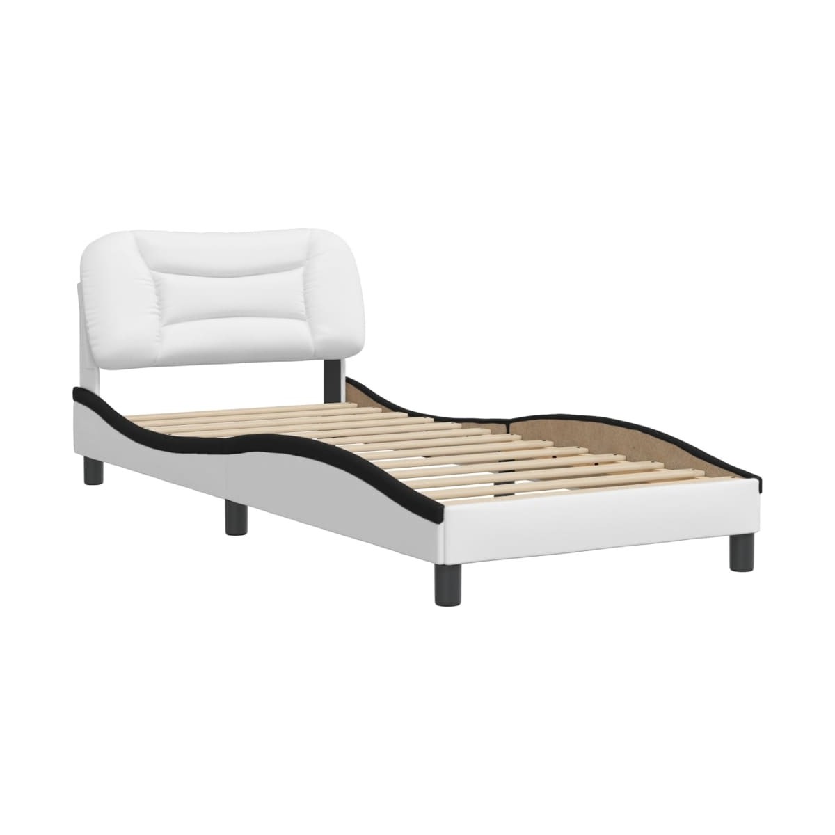¡Consigue un sueño más reparador con esta estructura de cama con cabecero! Es un aporte acogedor para cualquier dormitorio. Material duradero: El cuero sintético de primera calidad es un material muy duradero. Es resistente a las manchas, por lo que es fácil de limpiar con un paño húmedo. Además, la superficie lisa da un aspecto lujoso y la belleza del cuero auténtico.Listones robustos: Los listones de madera contrachapada proporcionan una buena distribución del peso, lo que garantiza que el colchón se mantenga en tu sitio con cada giro y vuelta del cuerpo mientras duermes.Excelente soporte: El cabecero acolchado está relleno de fibra PP para una comodidad ultrasuave y óptima, lo que te brinda un excelente soporte para la espalda mientras estás sentado en la cama para leer o ver la televisión.Diseño lateral ondulado: El look ondulado de la estructura de la cama es elegante y sofisticado, agregando un toque moderno y elegante a tu decoración, convirtiéndolo en el foco de atención de tu dormitorio. Información útil:El colchón no está incluido con la cama. Disponemos de una variada selección de colchones. Puedes echar un vistazo a nuestra tienda para buscar el colchón correspondiente.
