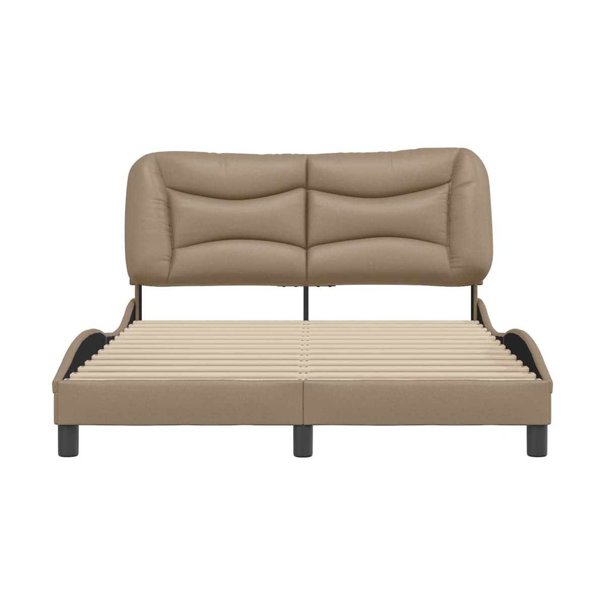 ¡Consigue un sueño más reparador con esta estructura de cama con cabecero! Es un aporte acogedor para cualquier dormitorio. Material duradero: El cuero sintético de primera calidad es un material muy duradero. Es resistente a las manchas, por lo que es fácil de limpiar con un paño húmedo. Además, la superficie lisa da un aspecto lujoso y la belleza del cuero auténtico.Listones robustos: Los listones de madera contrachapada proporcionan una buena distribución del peso, lo que garantiza que el colchón se mantenga en tu sitio con cada giro y vuelta del cuerpo mientras duermes.Excelente soporte: El cabecero acolchado está relleno de fibra PP para una comodidad ultrasuave y óptima, lo que te brinda un excelente soporte para la espalda mientras estás sentado en la cama para leer o ver la televisión.Diseño lateral ondulado: El look ondulado de la estructura de la cama es elegante y sofisticado, agregando un toque moderno y elegante a tu decoración, convirtiéndolo en el foco de atención de tu dormitorio. Información útil:El colchón no está incluido con la cama. Disponemos de una variada selección de colchones. Puedes echar un vistazo a nuestra tienda para buscar el colchón correspondiente.