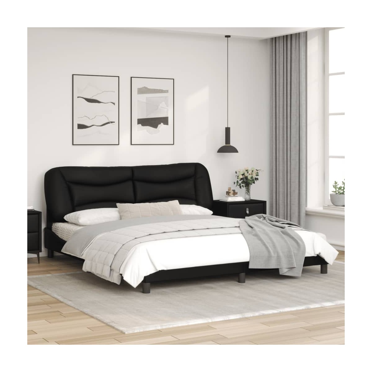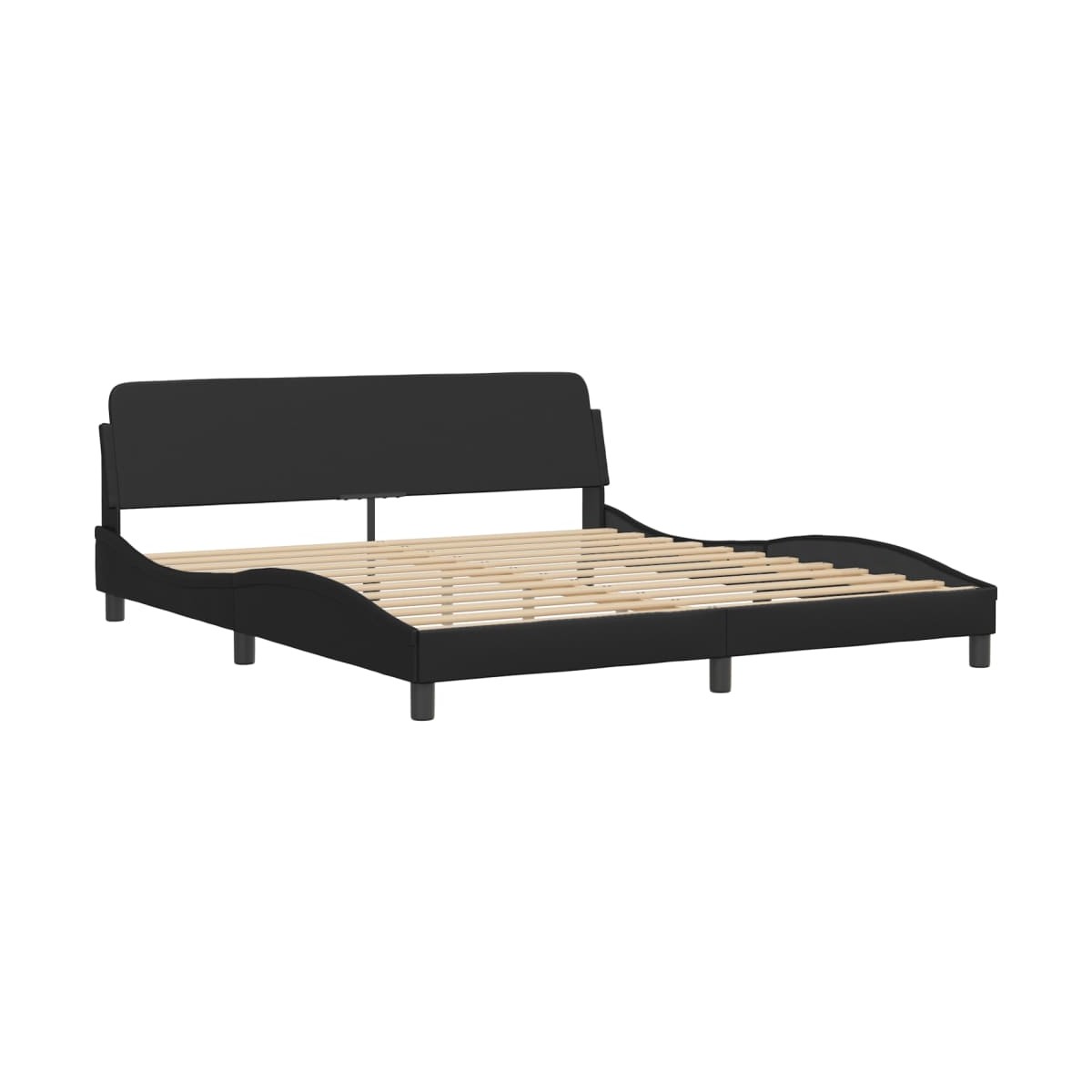 ¡Consigue un sueño más reparador con esta estructura de cama con cabecero! Es un aporte acogedor para cualquier dormitorio. Material duradero: El cuero sintético de primera calidad es un material muy duradero. Es resistente a las manchas, por lo que es fácil de limpiar con un paño húmedo. Además, la superficie lisa da un aspecto lujoso y la belleza del cuero auténtico.Listones robustos: Los listones de madera contrachapada proporcionan una buena distribución del peso, lo que garantiza que el colchón se mantenga en tu sitio con cada giro y vuelta del cuerpo mientras duermes.Excelente soporte: El cabecero acolchado está relleno de fibra PP para una comodidad ultrasuave y óptima, lo que te brinda un excelente soporte para la espalda mientras estás sentado en la cama para leer o ver la televisión.Diseño lateral ondulado: El look ondulado de la estructura de la cama es elegante y sofisticado, agregando un toque moderno y elegante a tu decoración, convirtiéndolo en el foco de atención de tu dormitorio. Información útil:El colchón no está incluido con la cama. Disponemos de una variada selección de colchones. Puedes echar un vistazo a nuestra tienda para buscar el colchón correspondiente.