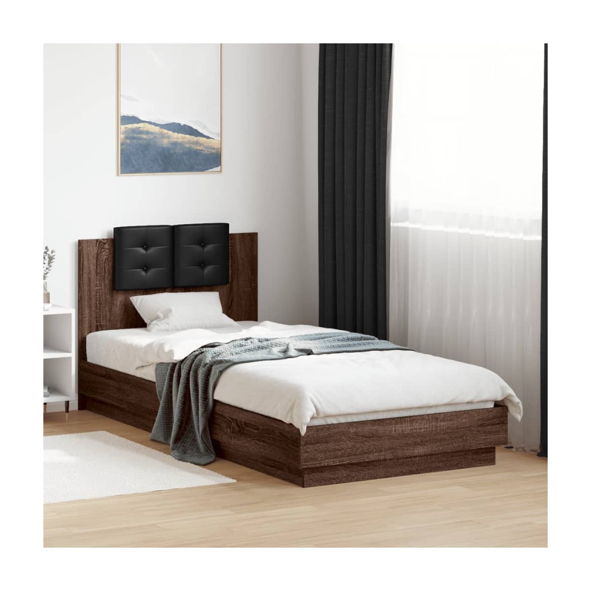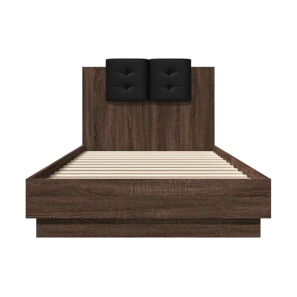 ¡Consigue tener un sueño más reparador con esta estructura de cama con cabecero y luces LED! Es un aporte acogedor para cualquier dormitorio. Material duradero: La madera de ingeniería tiene una calidad excepcional, con una superficie lisa y también cuenta con fuerza, estabilidad y resistencia a la humedad.Luces LED RGB: La estructura de cama está equipada con luces LED RGB. Con varios menús personalizables, puedes cambiar fácilmente el color de las luces e incluso configurarlas para que se ajusten automáticamente. Estas luces LED no sólo realzan el aspecto moderno de la base de la cama, sino que también aumentan su atractivo.Excelente soporte: El cabecero de la cama brinda un excelente soporte para la espalda mientras estás sentado en la cama para leer o ver la televisión.Listones robustos: Los listones de madera contrachapada proporcionan una buena distribución del peso, lo que garantiza que el colchón se mantenga en tu sitio con cada giro y vuelta del cuerpo mientras duermes. Información útil:El colchón no está incluido con la cama. Disponemos de una variada selección de colchones. Puedes echar un vistazo a nuestra tienda para buscar el colchón correspondiente.El producto tiene un conector USB que necesita una fuente de alimentación USB certificada de 5 V (no incluida).