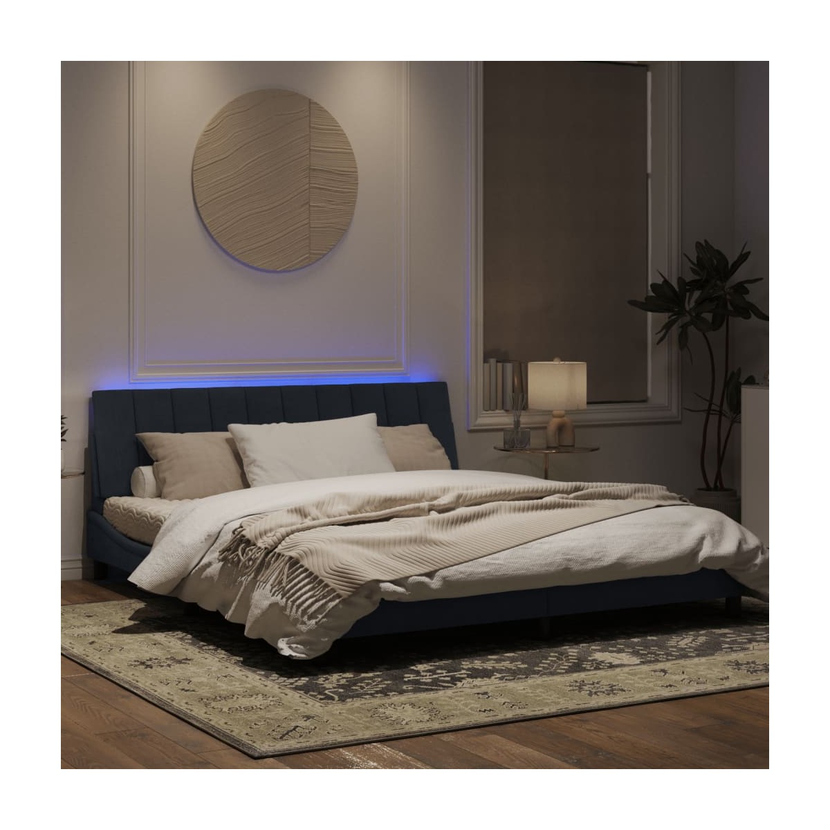 ¡Consigue tener un sueño reparador con esta estructura de cama con luces LED! Es un aporte acogedor para cualquier dormitorio. Terciopelo suave: El terciopelo es una tela suave y cálida, agradable al tacto.Listones robustos: Los listones de madera contrachapada proporcionan una buena distribución del peso, lo que garantiza que el colchón se mantenga en tu sitio con cada giro y vuelta del cuerpo mientras duermes.Excelente apoyo: El cabecero de la cama te proporciona un excelente apoyo para la espalda mientras estás sentado en la cama para leer o ver la televisión.Tira de LED de colores: Alegra la oscuridad con luces LED de colores. Los cierres de gancho y bucle de la parte posterior del cojín del cabecero se pueden utilizar para fijar las luces LED.Diseño lateral ondulado: El look ondulado de la estructura de la cama es elegante y sofisticado, agregando un toque moderno y elegante a tu decoración, convirtiéndolo en el foco de atención de tu dormitorio. Información útil:El colchón no está incluido con la cama. Disponemos de una variada selección de colchones. Puedes echar un vistazo a nuestra tienda para buscar el colchón correspondiente.El producto tiene un conector USB que necesita una fuente de alimentación USB certificada de 5 V (no incluida).