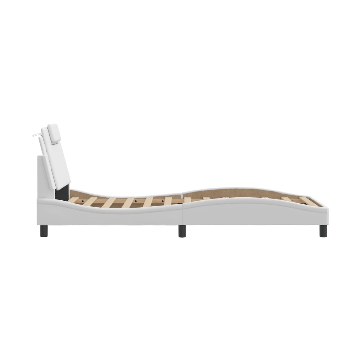 ¡Consigue tener un sueño reparador con esta estructura de cama con luces LED! Es un aporte acogedor para cualquier dormitorio. Material duradero: El cuero sintético de primera calidad es un material muy duradero. Es resistente a las manchas, por lo que es fácil de limpiar con un paño húmedo. Además, la superficie lisa da un aspecto lujoso y la belleza del cuero auténtico.Listones robustos: Los listones de madera contrachapada proporcionan una buena distribución del peso, lo que garantiza que el colchón se mantenga en tu sitio con cada giro y vuelta del cuerpo mientras duermes. Excelente soporte: El cabecero acolchado está relleno de espuma para una comodidad ultrasuave y óptima, lo que te brinda un excelente soporte para la espalda mientras estás sentado en la cama para leer o ver la televisión. Tira de LED de colores: Alegra la oscuridad con luces LED de colores. Los cierres de gancho y bucle de la parte posterior del cojín del cabecero se pueden utilizar para fijar las luces LED. Diseño lateral ondulado: El look ondulado de la estructura de la cama es elegante y sofisticado, agregando un toque moderno y elegante a tu decoración, convirtiéndolo en el foco de atención de tu dormitorio. Información útil:El colchón no está incluido con la cama. Disponemos de una variada selección de colchones. Puedes echar un vistazo a nuestra tienda para buscar el colchón correspondiente.El producto tiene un conector USB que necesita una fuente de alimentación USB certificada de 5 V (no incluida).