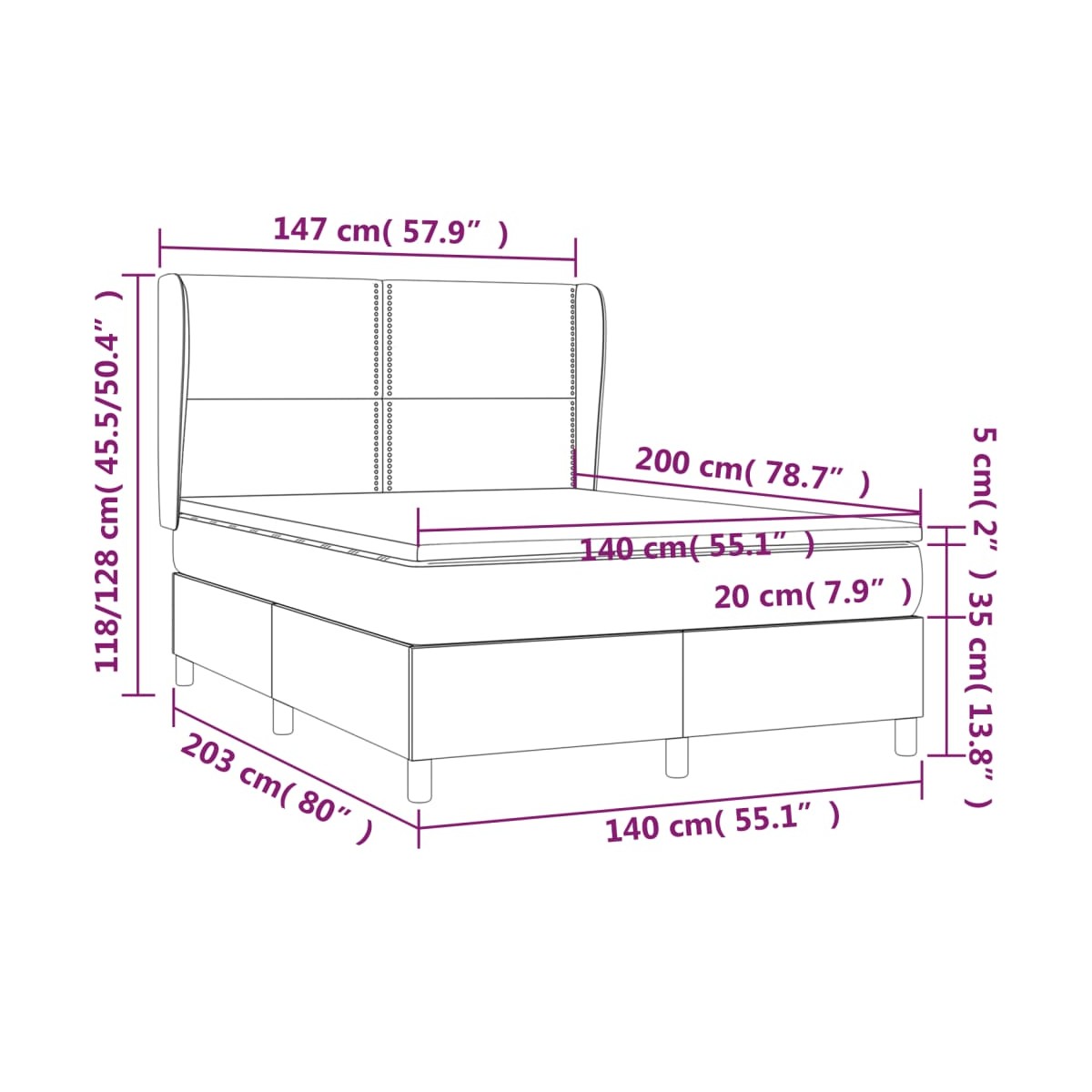 - Dimensiones: 140 x 200 x 20 cm (ancho x largo x alto)