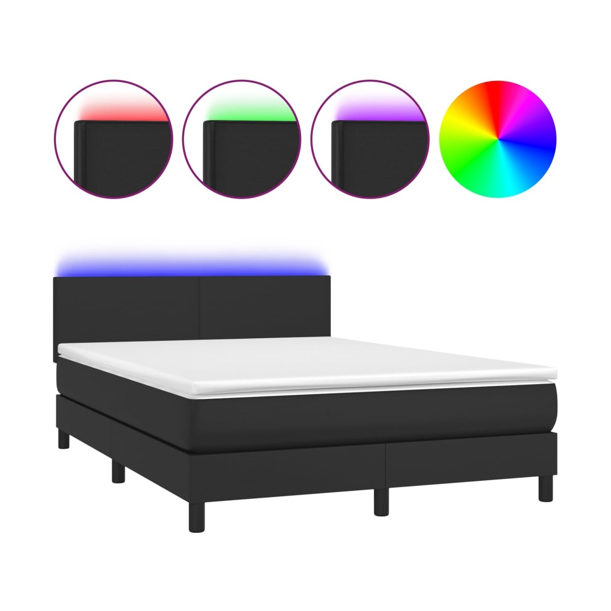 Utiliza esta cama box spring con colchón y LED para disfrutar de un sueño reparador. Es el centro de atención de tu dormitorio. Material duradero: El cuero sintético de primera calidad es un material muy duradero. Es resistente a las manchas, por lo que es fácil de limpiar con un paño húmedo. Además, la superficie lisa da un aspecto lujoso y la belleza del cuero auténtico.Cabecero práctico: El cabecero de la cama es ajustable en altura según tus preferencias. El cabecero de la cama te proporciona un excelente apoyo para la espalda mientras estás sentado en la cama para leer o ver la televisión.Tira de LED de colores: Alegra la oscuridad con luces LED de colores.Colchón de muelles ensacados: El muelle ensacado individual incorporado es conocido por su altísima calidad, al tiempo que garantiza un alto nivel de durabilidad y adaptabilidad. Puede absorber eficazmente el ruido y los golpes causados por los lanzamientos y los giros.Protector de colchón respetuoso con la piel: El protector de colchón tiene una funda de tejido resistente y respetuoso con la piel, que lo hace suave y confortable. Nota:Por razones de higiene, el colchón no puede devolverse si se ha quitado o abierto el embalaje.Cada producto viene con un manual de montaje en la caja para facilitar el montaje.Únicamente puedes cortar por la parte con el símbolo de las tijeras y únicamente la parte con el USB seguirá funcionando como antes.El producto tiene un conector USB, pero no se incluye la fuente de alimentación USB de 5 V certificada.