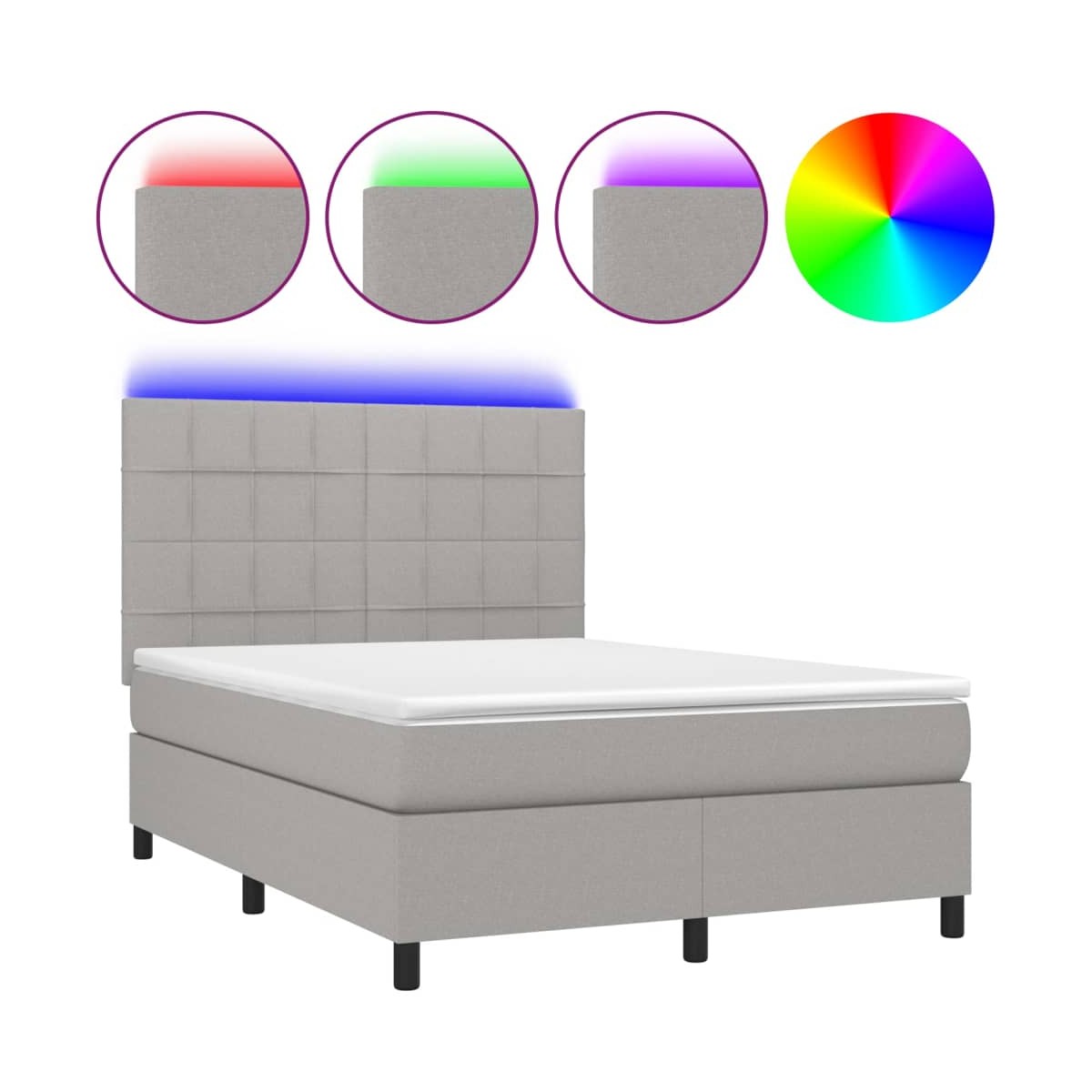 Utiliza esta cama box spring con colchón y LED para disfrutar de un sueño reparador. Es el centro de atención de tu dormitorio. Material de primera calidad: La tela posee un aspecto sencillo y limpio, y es transpirable y duradera.Cabecero práctico: El cabecero de la cama es ajustable en altura según tus preferencias. El cabecero de la cama te proporciona un excelente apoyo para la espalda mientras estás sentado en la cama para leer o ver la televisión.Tira de LED de colores: Alegra la oscuridad con luces LED de colores.Colchón de muelles ensacados: El muelle ensacado individual incorporado es conocido por su altísima calidad, al tiempo que garantiza un alto nivel de durabilidad y adaptabilidad. Puede absorber eficazmente el ruido y los golpes causados por los lanzamientos y los giros.Protector de colchón respetuoso con la piel: El protector de colchón tiene una funda de tejido resistente y respetuoso con la piel, que lo hace suave y confortable. Nota:Por razones de higiene, el colchón no puede devolverse si se ha quitado o abierto el embalaje.Únicamente puedes cortar por la parte con el símbolo de las tijeras y únicamente la parte con el USB seguirá funcionando como antes.Cada producto viene con un manual de montaje en la caja para facilitar el montaje.El producto tiene un conector USB, pero no se incluye la fuente de alimentación USB de 5 V certificada.