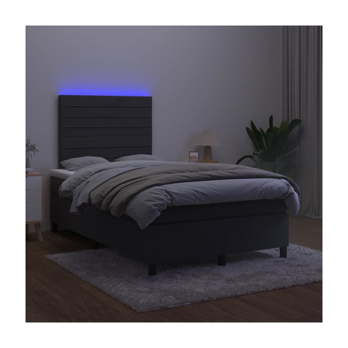 Utiliza esta cama box spring con colchón y LED para disfrutar de un sueño reparador. Es el centro de atención de tu dormitorio. Terciopelo suave: El terciopelo es una tela suave y lujosa, reconocida por su denso pelo de fibras cortadas de forma uniforme que tienen una suave pelusa. La tela de terciopelo posee un característico y suave tacto, lo que hace que sea cómoda al tacto.Cabecero práctico: El cabecero de la cama es ajustable en altura según tus preferencias. El cabecero de la cama te proporciona un excelente apoyo para la espalda mientras estás sentado en la cama para leer o ver la televisión.Tira de LED de colores: Alegra la oscuridad con luces LED de colores.Colchón de muelles ensacados: El muelle ensacado individual incorporado es conocido por su altísima calidad, al tiempo que garantiza un alto nivel de durabilidad y adaptabilidad. Puede absorber eficazmente el ruido y los golpes causados por los lanzamientos y los giros.Protector de colchón respetuoso con la piel: El protector de colchón tiene una funda de tejido resistente y respetuoso con la piel, que lo hace suave y confortable. Nota:Por razones de higiene, el colchón no puede devolverse si se ha quitado o abierto el embalaje.Únicamente puedes cortar por la parte con el símbolo de las tijeras y únicamente la parte con el USB seguirá funcionando como antes.Cada producto viene con un manual de montaje en la caja para facilitar el montaje.El producto tiene un conector USB, pero no se incluye la fuente de alimentación USB de 5 V certificada.