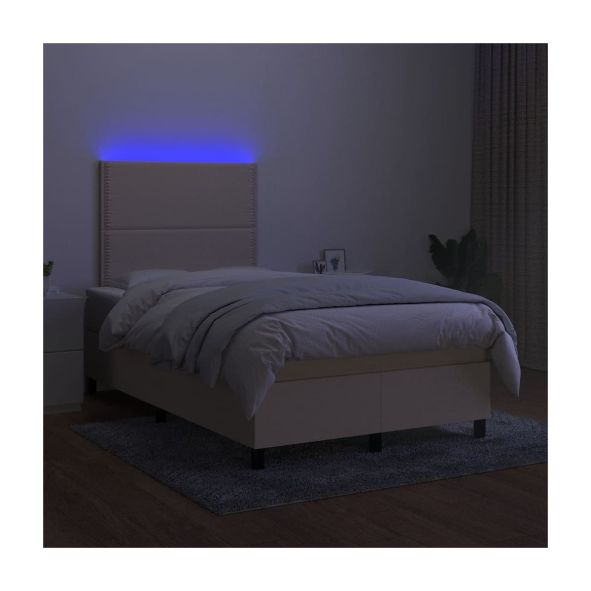 Utiliza esta cama box spring con colchón y LED para disfrutar de un sueño reparador. Es el centro de atención de tu dormitorio. Material de primera calidad: La tela posee un aspecto sencillo y limpio, y es transpirable y duradera.Cabecero práctico: El cabecero de la cama es ajustable en altura según tus preferencias. El cabecero de la cama te proporciona un excelente apoyo para la espalda mientras estás sentado en la cama para leer o ver la televisión.Tira de LED de colores: Alegra la oscuridad con luces LED de colores.Colchón de muelles ensacados: El muelle ensacado individual incorporado es conocido por su altísima calidad, al tiempo que garantiza un alto nivel de durabilidad y adaptabilidad. Puede absorber eficazmente el ruido y los golpes causados por los lanzamientos y los giros.Protector de colchón respetuoso con la piel: El protector de colchón tiene una funda de tejido resistente y respetuoso con la piel, que lo hace suave y confortable. Información útil:Por razones de higiene, el colchón no puede devolverse si se ha quitado o abierto el embalaje.Únicamente puedes cortar por la parte con el símbolo de las tijeras y únicamente la parte con el USB seguirá funcionando como antes.El producto tiene un conector USB que necesita una fuente de alimentación USB certificada de 5 V (no incluida).