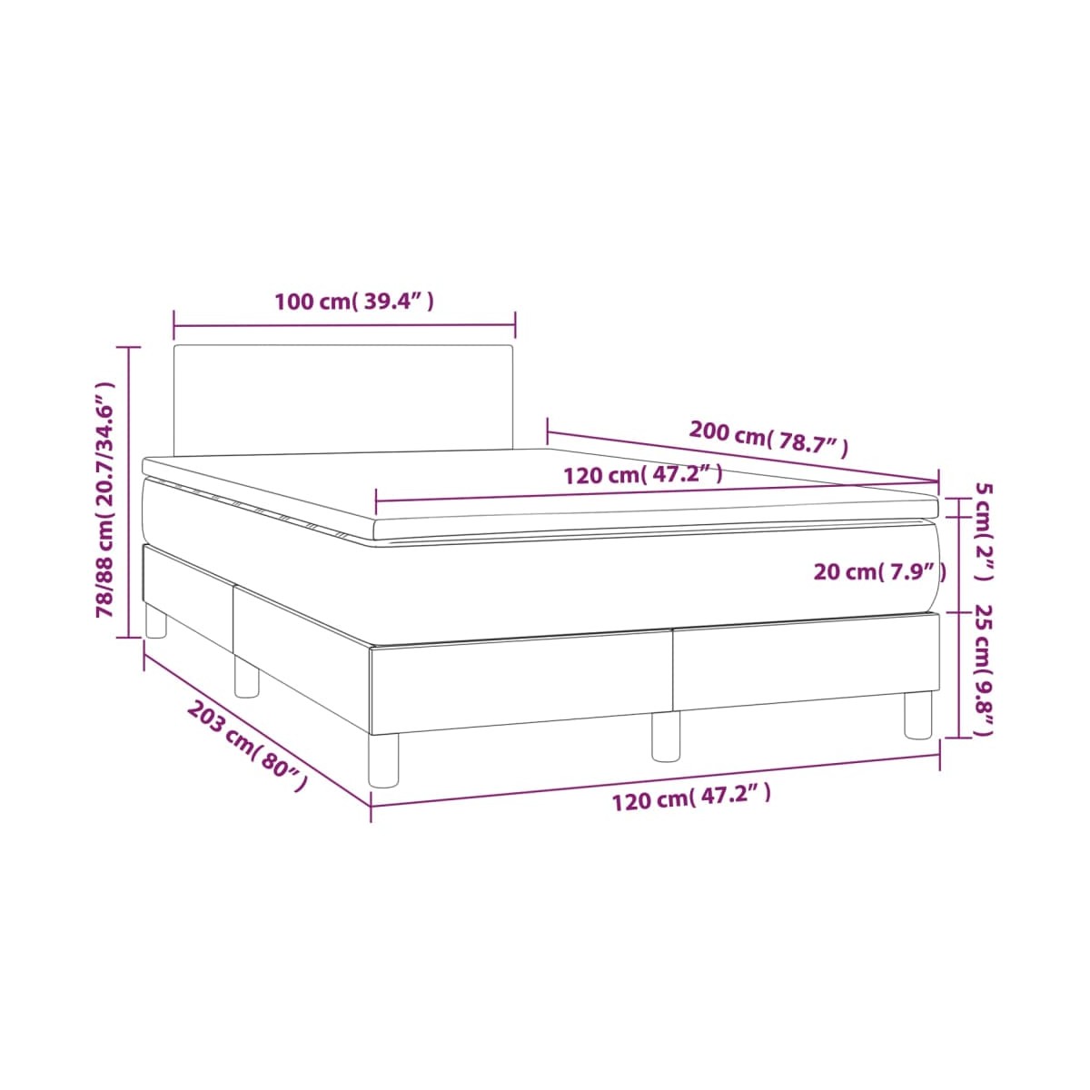 - Dimensiones: 120 x 200 x 20 cm (ancho x largo x alto)