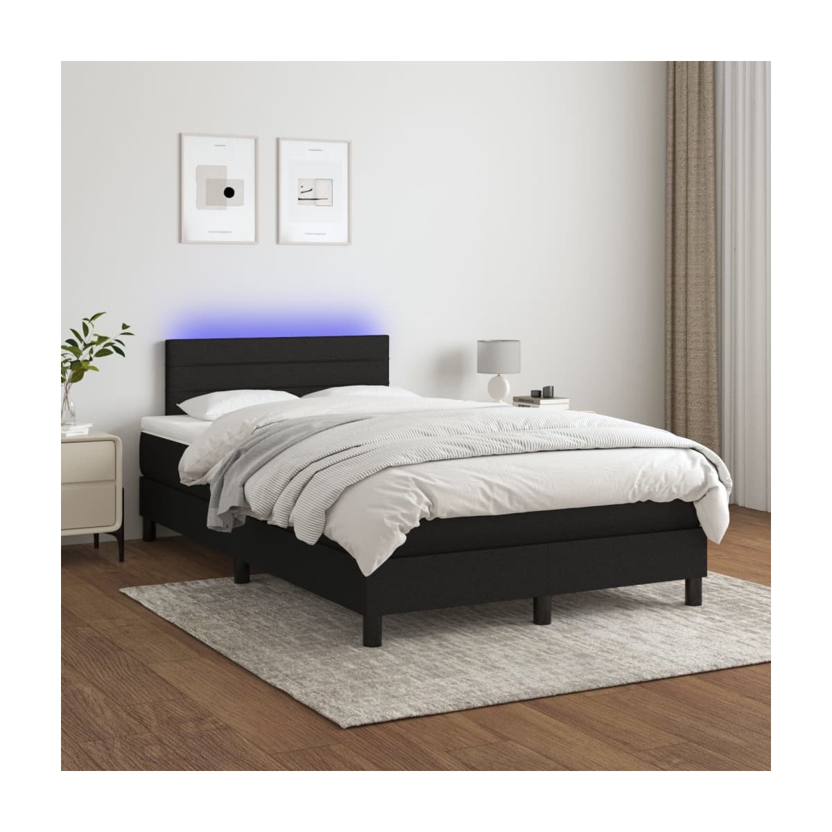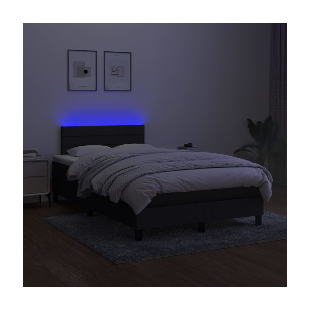 Utiliza esta cama tipo box spring con colchón y luces LED para disfrutar de un sueño reparador. Será el centro de atención del dormitorio. Material de primera calidad: La tela posee un aspecto sencillo y limpio, y es transpirable y duradera.Cabecero práctico: El cabecero de la cama es ajustable en altura según tus preferencias. El cabecero de la cama te proporciona un excelente apoyo para la espalda mientras estás sentado en la cama para leer o ver la televisión.Tira de LED de colores: Alegra la oscuridad con luces LED de colores.Colchón de muelles ensacados: El muelle ensacado individual incorporado es conocido por su altísima calidad, al tiempo que garantiza un alto nivel de durabilidad y adaptabilidad. Puede absorber eficazmente el ruido y los golpes causados por los lanzamientos y los giros.Protector de colchón respetuoso con la piel: El protector de colchón tiene una funda de tejido resistente y respetuoso con la piel, que lo hace suave y confortable. Nota: La lona impermeable no está incluidaPor razones de higiene, el colchón no puede devolverse si se ha quitado o abierto el embalaje.Cada producto viene con un manual de montaje en la caja para facilitar el montaje.Únicamente puedes cortar por la parte con el símbolo de las tijeras y únicamente la parte con el USB seguirá funcionando como antes.El producto tiene un conector USB, pero no se incluye la fuente de alimentación USB de 5 V certificada.