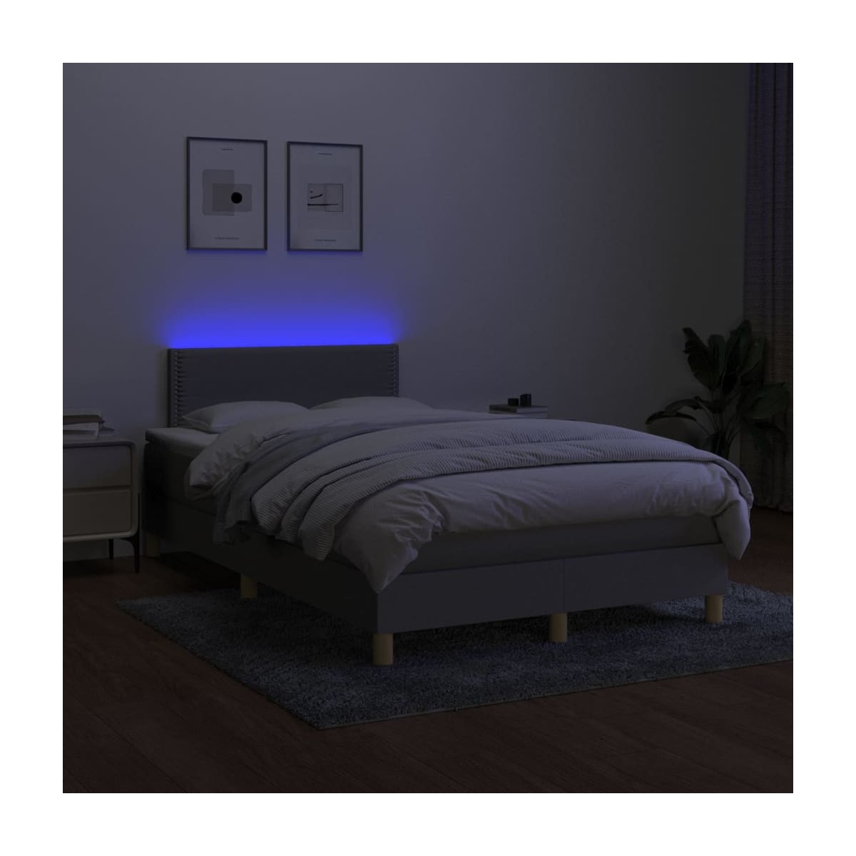 Utiliza esta cama box spring con colchón y LED para disfrutar de un sueño reparador. Es el centro de atención de tu dormitorio. Material de primera calidad: La tela posee un aspecto sencillo y limpio, y es transpirable y duradera.Cabecero práctico: El cabecero de la cama es ajustable en altura según tus preferencias. El cabecero de la cama te proporciona un excelente apoyo para la espalda mientras estás sentado en la cama para leer o ver la televisión.Tira de LED de colores: Alegra la oscuridad con luces LED de colores.Colchón de muelles ensacados: El muelle ensacado individual incorporado es conocido por su altísima calidad, al tiempo que garantiza un alto nivel de durabilidad y adaptabilidad. Puede absorber eficazmente el ruido y los golpes causados por los lanzamientos y los giros.Protector de colchón respetuoso con la piel: El protector de colchón tiene una funda de tejido resistente y respetuoso con la piel, que lo hace suave y confortable. Nota:Por razones de higiene, el colchón no puede devolverse si se ha quitado o abierto el embalaje.Cada producto viene con un manual de montaje en la caja para facilitar el montaje.Únicamente puedes cortar por la parte con el símbolo de las tijeras y únicamente la parte con el USB seguirá funcionando como antes.El producto tiene un conector USB, pero no se incluye la fuente de alimentación USB de 5 V certificada.