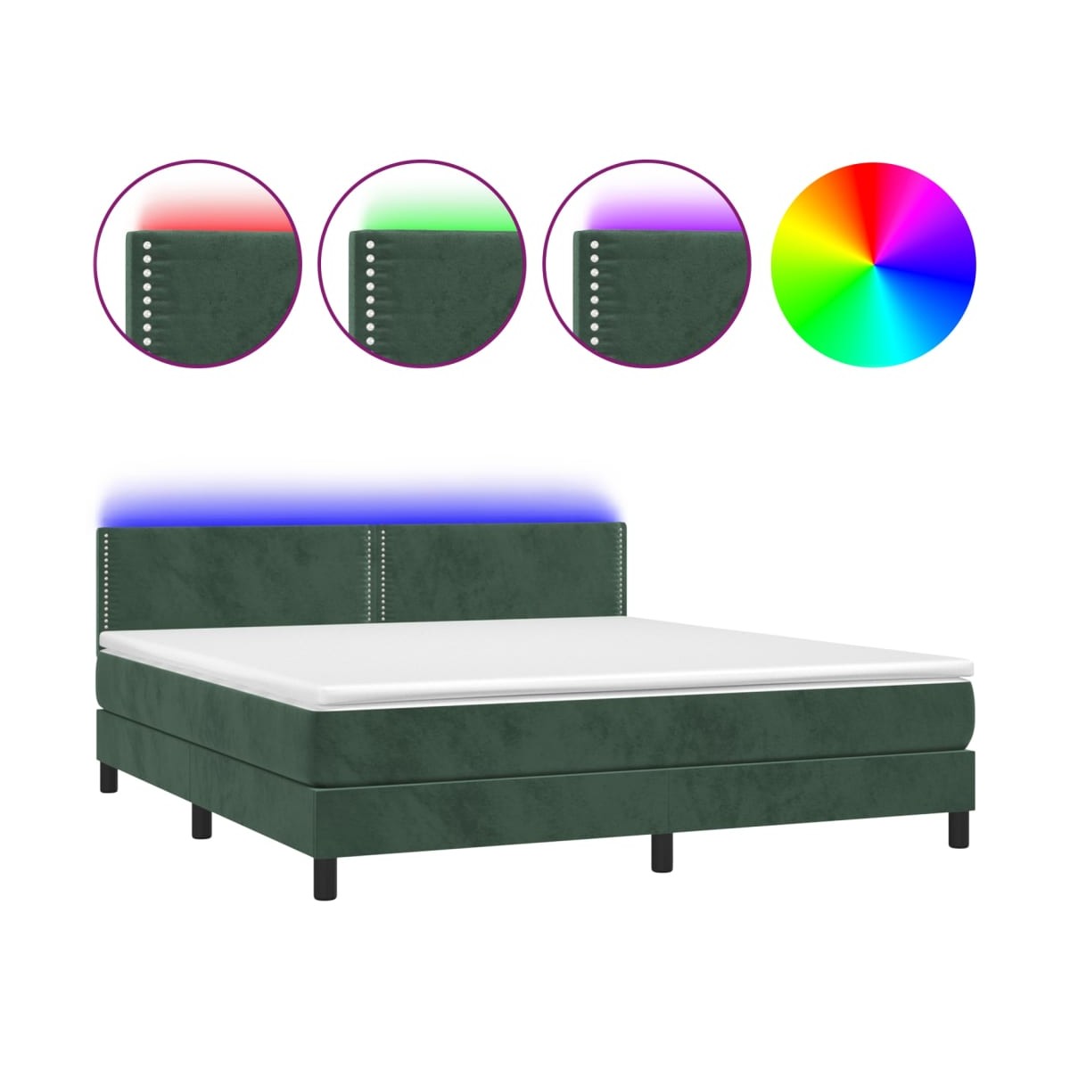 Utiliza esta cama box spring con colchón y LED para disfrutar de un sueño reparador. Es el centro de atención de tu dormitorio. Terciopelo suave: El terciopelo es una tela suave y lujosa, reconocida por su denso pelo de fibras cortadas de forma uniforme que tienen una suave pelusa. La tela de terciopelo posee un característico y suave tacto, lo que hace que sea cómoda al tacto.Cabecero práctico: El cabecero de la cama es ajustable en altura según tus preferencias. El cabecero de la cama te proporciona un excelente apoyo para la espalda mientras estás sentado en la cama para leer o ver la televisión.Tira de LED de colores: Alegra la oscuridad con luces LED de colores.Colchón de muelles ensacados: El muelle ensacado individual incorporado es conocido por su altísima calidad, al tiempo que garantiza un alto nivel de durabilidad y adaptabilidad. Puede absorber eficazmente el ruido y los golpes causados por los lanzamientos y los giros.Protector de colchón respetuoso con la piel: El protector de colchón tiene una funda de tejido resistente y respetuoso con la piel, que lo hace suave y confortable. Nota:Por razones de higiene, el colchón no puede devolverse si se ha quitado o abierto el embalaje.Cada producto viene con un manual de montaje en la caja para facilitar el montaje.Únicamente puedes cortar por la parte con el símbolo de las tijeras y únicamente la parte con el USB seguirá funcionando como antes.El producto tiene un conector USB, pero no se incluye la fuente de alimentación USB de 5 V certificada.