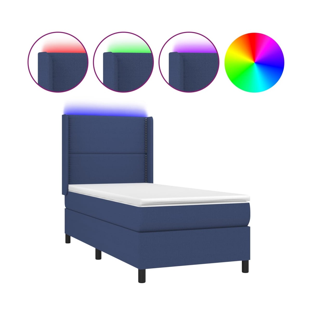 Utiliza esta cama tipo box spring con colchón y luces LED para disfrutar de un sueño reparador. Será el centro de atención del dormitorio. Material de primera calidad: La tela posee un aspecto sencillo y limpio, y es transpirable y duradera.Cabecero práctico: El cabecero de la cama es ajustable en altura según tus preferencias. El cabecero de la cama te proporciona un excelente apoyo para la espalda mientras estás sentado en la cama para leer o ver la televisión.Tira de LED de colores: Alegra la oscuridad con luces LED de colores.Colchón de muelles ensacados: El muelle ensacado individual incorporado es conocido por su altísima calidad, al tiempo que garantiza un alto nivel de durabilidad y adaptabilidad. Puede absorber eficazmente el ruido y los golpes causados por los lanzamientos y los giros.Protector de colchón respetuoso con la piel: El protector de colchón tiene una funda de tejido resistente y respetuoso con la piel, que lo hace suave y confortable. Nota: La lona impermeable no está incluidaPor razones de higiene, el colchón no puede devolverse si se ha quitado o abierto el embalaje.Únicamente puedes cortar por la parte con el símbolo de las tijeras y únicamente la parte con el USB seguirá funcionando como antes.Cada producto viene con un manual de montaje en la caja para facilitar el montaje.El producto tiene un conector USB, pero no se incluye la fuente de alimentación USB de 5 V certificada.