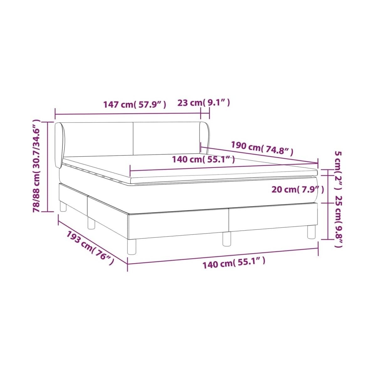 - Dimensiones: 140 x 190 x 20 cm (ancho x largo x alto)