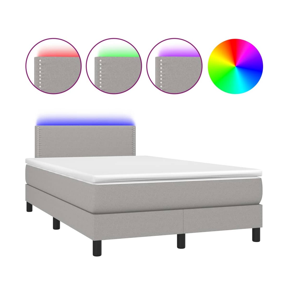 Utiliza esta cama tipo box spring con colchón y luces LED para disfrutar de un sueño reparador. Será el centro de atención del dormitorio. Material de primera calidad: La tela posee un aspecto sencillo y limpio, y es transpirable y duradera.Cabecero práctico: El cabecero de la cama es ajustable en altura según tus preferencias. El cabecero de la cama te proporciona un excelente apoyo para la espalda mientras estás sentado en la cama para leer o ver la televisión.Tira de LED de colores: Alegra la oscuridad con luces LED de colores.Colchón de muelles ensacados: El muelle ensacado individual incorporado es conocido por su altísima calidad, al tiempo que garantiza un alto nivel de durabilidad y adaptabilidad. Puede absorber eficazmente el ruido y los golpes causados por los lanzamientos y los giros.Protector de colchón respetuoso con la piel: El protector de colchón tiene una funda de tejido resistente y respetuoso con la piel, que lo hace suave y confortable. Nota:Por razones de higiene, el colchón no puede devolverse si se ha quitado o abierto el embalaje.Cada producto viene con un manual de montaje en la caja para facilitar el montaje.Únicamente puedes cortar por la parte con el símbolo de las tijeras y únicamente la parte con el USB seguirá funcionando como antes.El producto tiene un conector USB, pero no se incluye la fuente de alimentación USB de 5 V certificada.