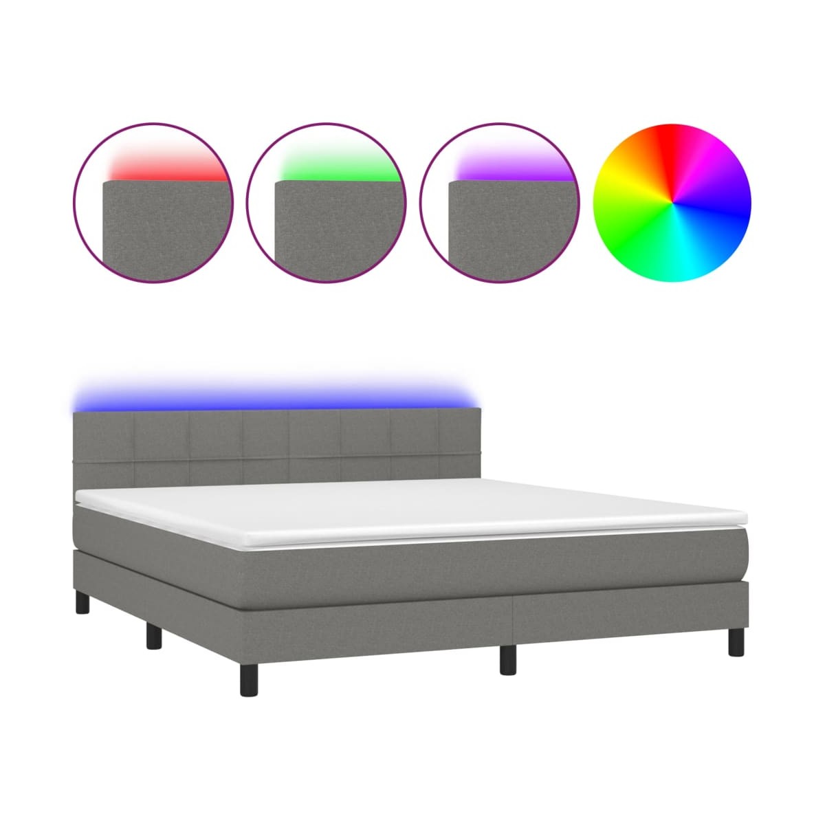 Utiliza esta cama tipo box spring con colchón y luces LED para disfrutar de un sueño reparador. Será el centro de atención del dormitorio. Material de primera calidad: La tela posee un aspecto sencillo y limpio, y es transpirable y duradera.Cabecero práctico: El cabecero de la cama es ajustable en altura según tus preferencias. El cabecero de la cama te proporciona un excelente apoyo para la espalda mientras estás sentado en la cama para leer o ver la televisión.Tira de LED de colores: Alegra la oscuridad con luces LED de colores.Colchón de muelles ensacados: El muelle ensacado individual incorporado es conocido por su altísima calidad, al tiempo que garantiza un alto nivel de durabilidad y adaptabilidad. Puede absorber eficazmente el ruido y los golpes causados por los lanzamientos y los giros.Protector de colchón respetuoso con la piel: El protector de colchón tiene una funda de tejido resistente y respetuoso con la piel, que lo hace suave y confortable. Nota: La lona impermeable no está incluidaPor razones de higiene, el colchón no puede devolverse si se ha quitado o abierto el embalaje.Cada producto viene con un manual de montaje en la caja para facilitar el montaje.Únicamente puedes cortar por la parte con el símbolo de las tijeras y únicamente la parte con el USB seguirá funcionando como antes.El producto tiene un conector USB, pero no se incluye la fuente de alimentación USB de 5 V certificada.