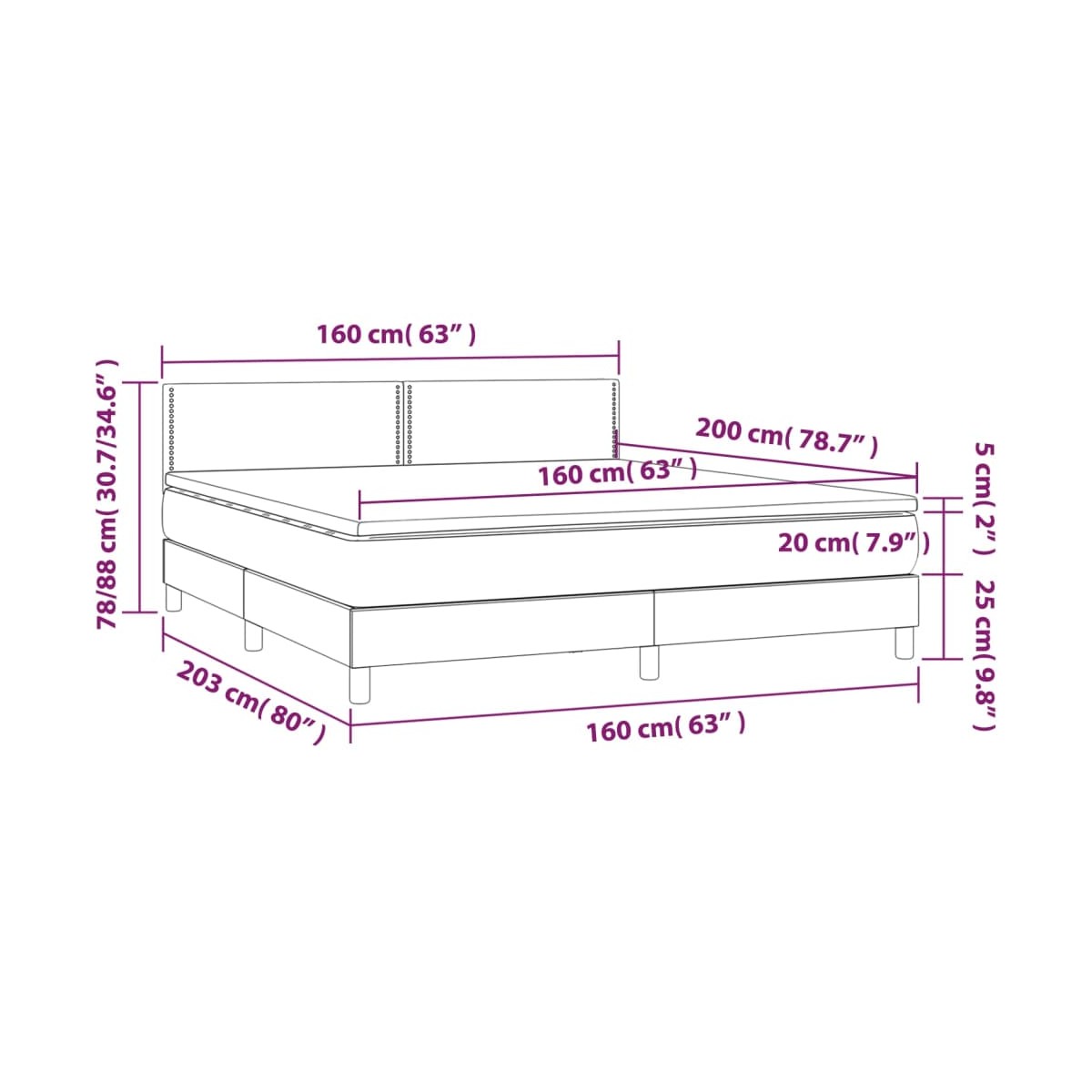 Utiliza esta cama box spring con colchón y LED para disfrutar de un sueño reparador. Es el centro de atención de tu dormitorio. Terciopelo suave: El terciopelo es una tela suave y lujosa, reconocida por su denso pelo de fibras cortadas de forma uniforme que tienen una suave pelusa. La tela de terciopelo posee un característico y suave tacto, lo que hace que sea cómoda al tacto.Cabecero práctico: El cabecero de la cama es ajustable en altura según tus preferencias. El cabecero de la cama te proporciona un excelente apoyo para la espalda mientras estás sentado en la cama para leer o ver la televisión.Tira de LED de colores: Alegra la oscuridad con luces LED de colores.Colchón de muelles ensacados: El muelle ensacado individual incorporado es conocido por su altísima calidad, al tiempo que garantiza un alto nivel de durabilidad y adaptabilidad. Puede absorber eficazmente el ruido y los golpes causados por los lanzamientos y los giros.Protector de colchón respetuoso con la piel: El protector de colchón tiene una funda de tejido resistente y respetuoso con la piel, que lo hace suave y confortable. Nota:Por razones de higiene, el colchón no puede devolverse si se ha quitado o abierto el embalaje.Cada producto viene con un manual de montaje en la caja para facilitar el montaje.Únicamente puedes cortar por la parte con el símbolo de las tijeras y únicamente la parte con el USB seguirá funcionando como antes.El producto tiene un conector USB, pero no se incluye la fuente de alimentación USB de 5 V certificada.