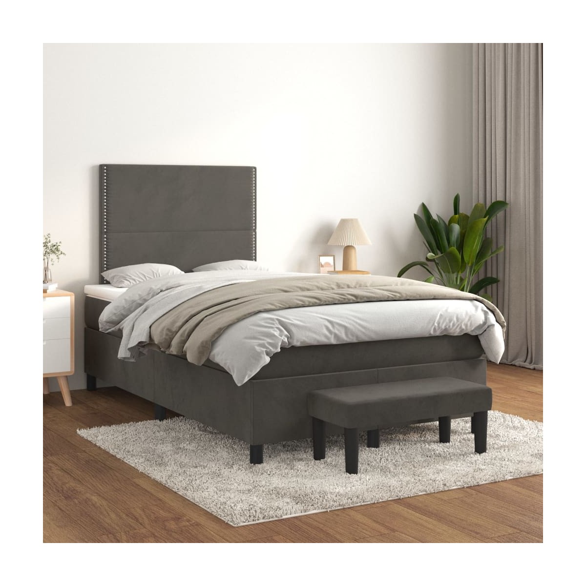Utiliza esta cama de muelles para disfrutar de un sueño reparador. Te ofrece la máxima relajación y un sueño placentero. Terciopelo suave: El terciopelo es una tela suave y lujosa, reconocida por su denso pelo de fibras cortadas de forma uniforme que tienen una suave pelusa. La tela de terciopelo posee un característico y suave tacto, lo que hace que sea cómoda al tacto.Cabecero práctico: El cabecero de la cama es ajustable en altura según tus preferencias. El cabecero de la cama te proporciona un excelente apoyo para la espalda mientras estás sentado en la cama para leer o ver la televisión.Colchón de muelles ensacados: El muelle ensacado individual incorporado es conocido por su altísima calidad, al tiempo que garantiza un alto nivel de durabilidad y adaptabilidad. Puede absorber eficazmente el ruido y los golpes causados por los lanzamientos y los giros.Soporte de dureza media: El colchón de la cama proporciona perfectamente una mayor estabilidad y el nivel justo de firmeza sin sacrificar la comodidad. Por tanto, es ideal para quienes duermen de espaldas o boca abajo.Protector de colchón respetuoso con la piel: El protector de colchón tiene una funda de tejido resistente y respetuoso con la piel, que lo hace suave y confortable.Banco multifuncional: Este banco puede servir como asiento adicional en tu casa. Además, puede utilizarse como banco de pie de cama. Nota:Por razones de higiene, el colchón no puede devolverse si se ha quitado o abierto el embalaje.Cada producto viene con un manual de montaje en la caja para facilitar el montaje.