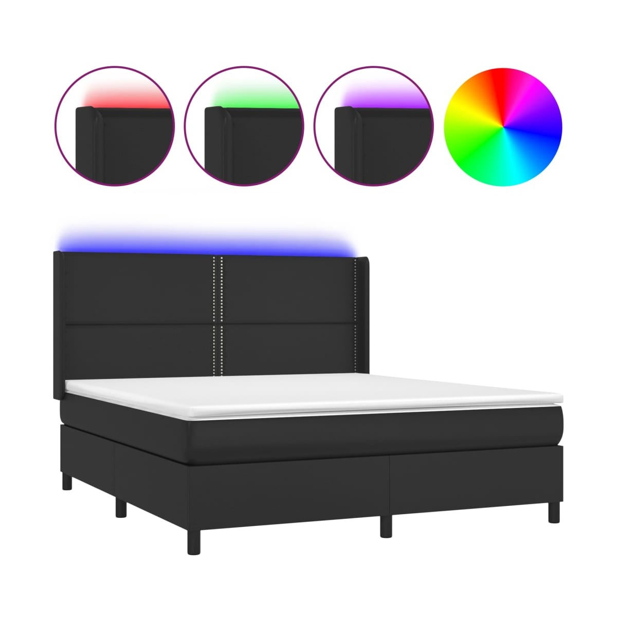 Utiliza esta cama tipo box spring con colchón y luces LED para disfrutar de un sueño reparador. Será el centro de atención del dormitorio. Material duradero: El cuero sintético de primera calidad es un material muy duradero. Es resistente a las manchas, por lo que es fácil de limpiar con un paño húmedo. Además, la superficie lisa da un aspecto lujoso y la belleza del cuero auténtico.Cabecero práctico: El cabecero de la cama es ajustable en altura según tus preferencias. El cabecero de la cama te proporciona un excelente apoyo para la espalda mientras estás sentado en la cama para leer o ver la televisión.Tira de LED de colores: Alegra la oscuridad con luces LED de colores.Colchón de muelles ensacados: El muelle ensacado individual incorporado es conocido por su altísima calidad, al tiempo que garantiza un alto nivel de durabilidad y adaptabilidad. Puede absorber eficazmente el ruido y los golpes causados por los lanzamientos y los giros.Protector de colchón respetuoso con la piel: El protector de colchón tiene una funda de tejido resistente y respetuoso con la piel, que lo hace suave y confortable. Nota:Por razones de higiene, el colchón no puede devolverse si se ha quitado o abierto el embalaje.Únicamente puedes cortar por la parte con el símbolo de las tijeras y únicamente la parte con el USB seguirá funcionando como antes.Cada producto viene con un manual de montaje en la caja para facilitar el montaje.El producto tiene un conector USB, pero no se incluye la fuente de alimentación USB de 5 V certificada.