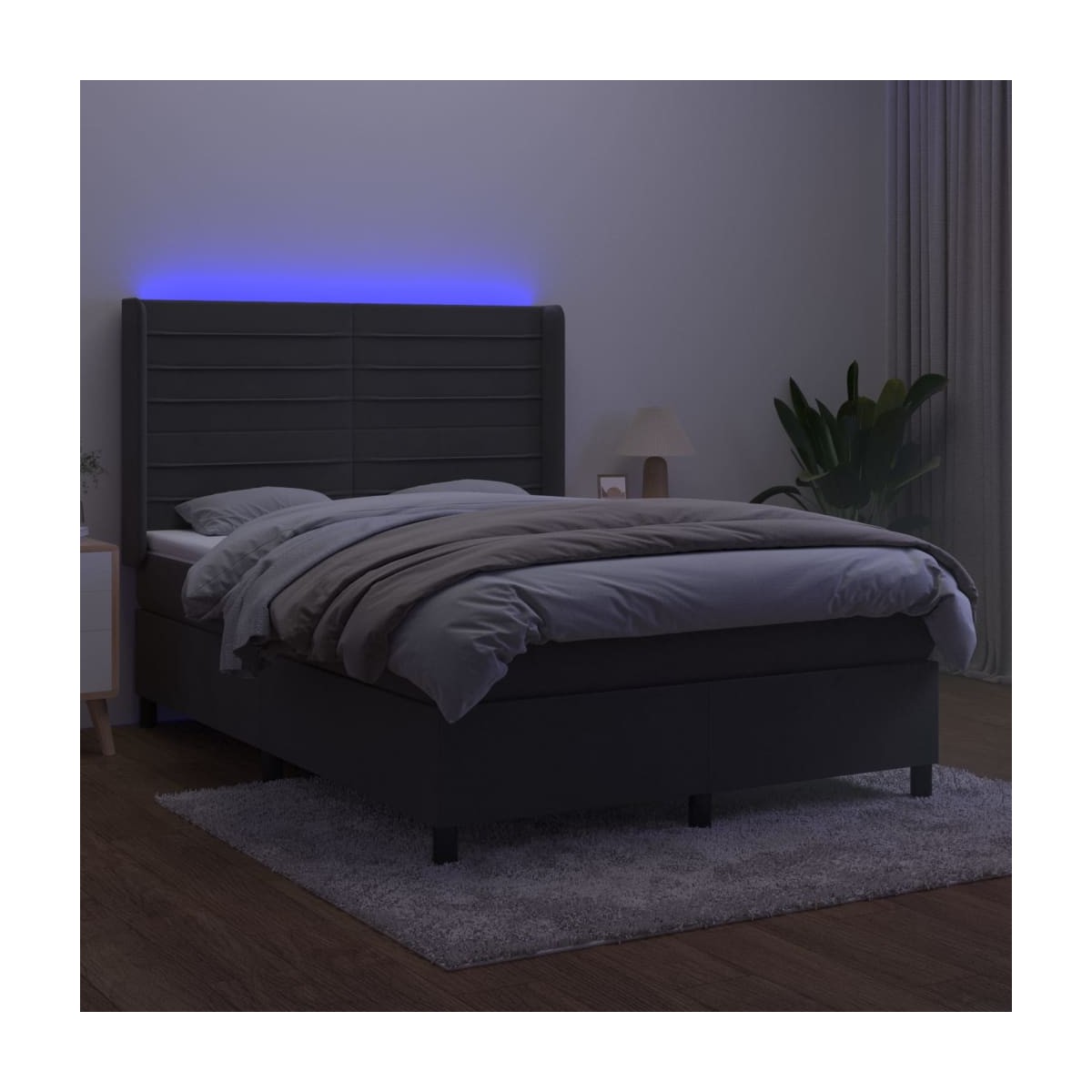 Utiliza esta cama tipo box spring con colchón y luces LED para disfrutar de un sueño reparador. Será el centro de atención del dormitorio. Terciopelo suave: El terciopelo es una tela suave y lujosa, reconocida por su denso pelo de fibras cortadas de forma uniforme que tienen una suave pelusa. La tela de terciopelo posee un característico y suave tacto, lo que hace que sea cómoda al tacto.Cabecero práctico: El cabecero de la cama es ajustable en altura según tus preferencias. El cabecero de la cama te proporciona un excelente apoyo para la espalda mientras estás sentado en la cama para leer o ver la televisión.Tira de LED de colores: Alegra la oscuridad con luces LED de colores.Colchón de muelles ensacados: El muelle ensacado individual incorporado es conocido por su altísima calidad, al tiempo que garantiza un alto nivel de durabilidad y adaptabilidad. Puede absorber eficazmente el ruido y los golpes causados por los lanzamientos y los giros.Protector de colchón respetuoso con la piel: El protector de colchón tiene una funda de tejido resistente y respetuoso con la piel, que lo hace suave y confortable. Nota:Por razones de higiene, el colchón no puede devolverse si se ha quitado o abierto el embalaje.Únicamente puedes cortar por la parte con el símbolo de las tijeras y únicamente la parte con el USB seguirá funcionando como antes.Cada producto viene con un manual de montaje en la caja para facilitar el montaje.El producto tiene un conector USB, pero no se incluye la fuente de alimentación USB de 5 V certificada.