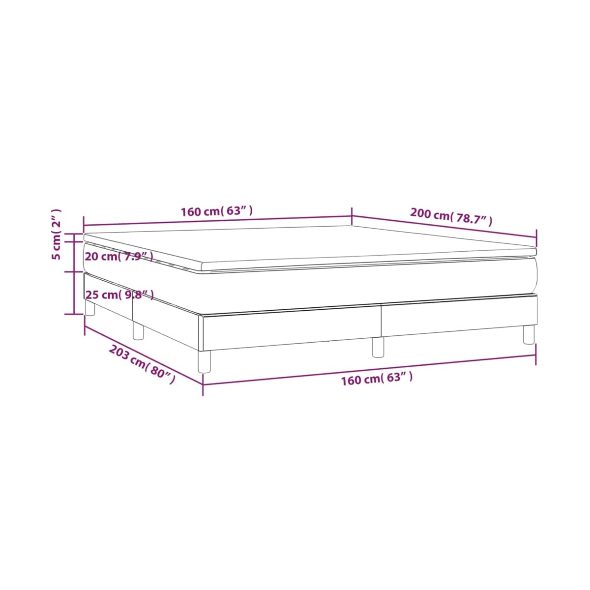 - Dimensiones: 203 x 160 x 25 cm (largo x ancho x alto)
