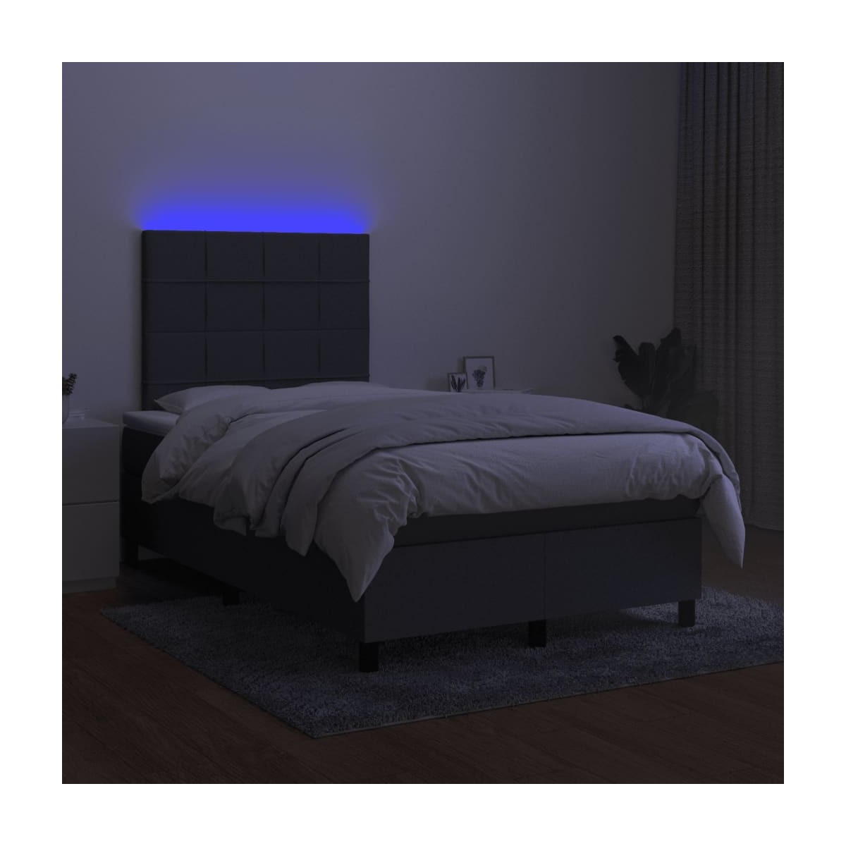 Utiliza esta cama box spring con colchón y LED para disfrutar de un sueño reparador. Es el centro de atención de tu dormitorio. Material de primera calidad: La tela posee un aspecto sencillo y limpio, y es transpirable y duradera.Cabecero práctico: El cabecero de la cama es ajustable en altura según tus preferencias. El cabecero de la cama te proporciona un excelente apoyo para la espalda mientras estás sentado en la cama para leer o ver la televisión.Tira de LED de colores: Alegra la oscuridad con luces LED de colores.Colchón de muelles ensacados: El muelle ensacado individual incorporado es conocido por su altísima calidad, al tiempo que garantiza un alto nivel de durabilidad y adaptabilidad. Puede absorber eficazmente el ruido y los golpes causados por los lanzamientos y los giros.Protector de colchón respetuoso con la piel: El protector de colchón tiene una funda de tejido resistente y respetuoso con la piel, que lo hace suave y confortable. Información útil:Por razones de higiene, el colchón no puede devolverse si se ha quitado o abierto el embalaje.Únicamente puedes cortar por la parte con el símbolo de las tijeras y únicamente la parte con el USB seguirá funcionando como antes.El producto tiene un conector USB que necesita una fuente de alimentación USB certificada de 5 V (no incluida).